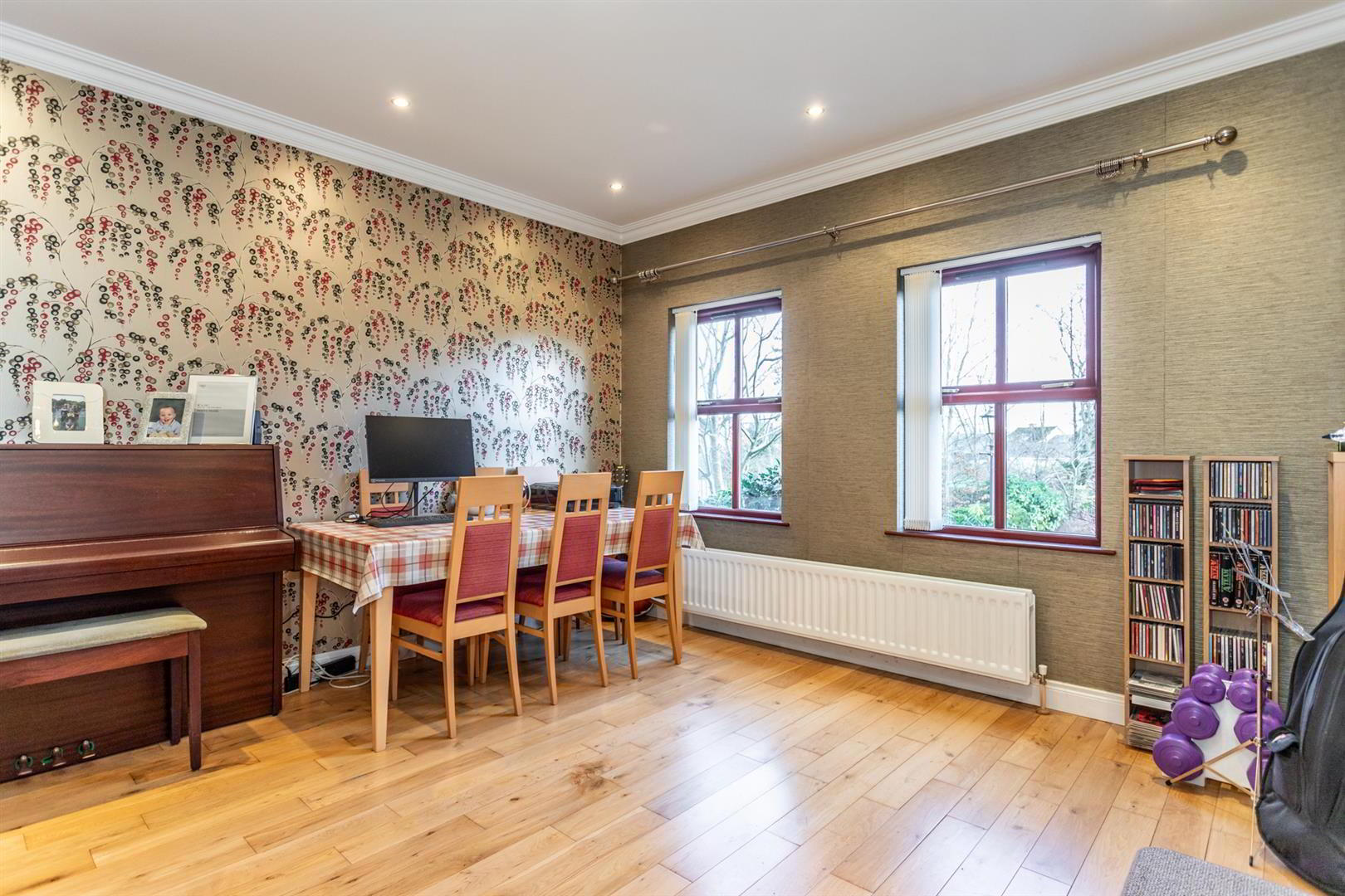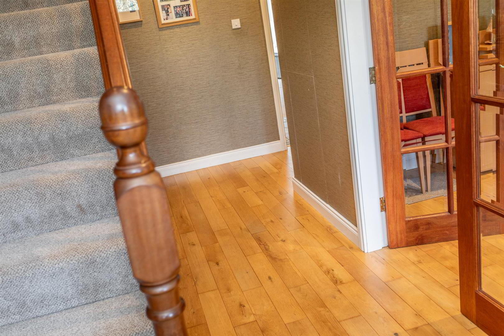 • Dining room with solid wood floor and bevelled glass French doors to entrance hall