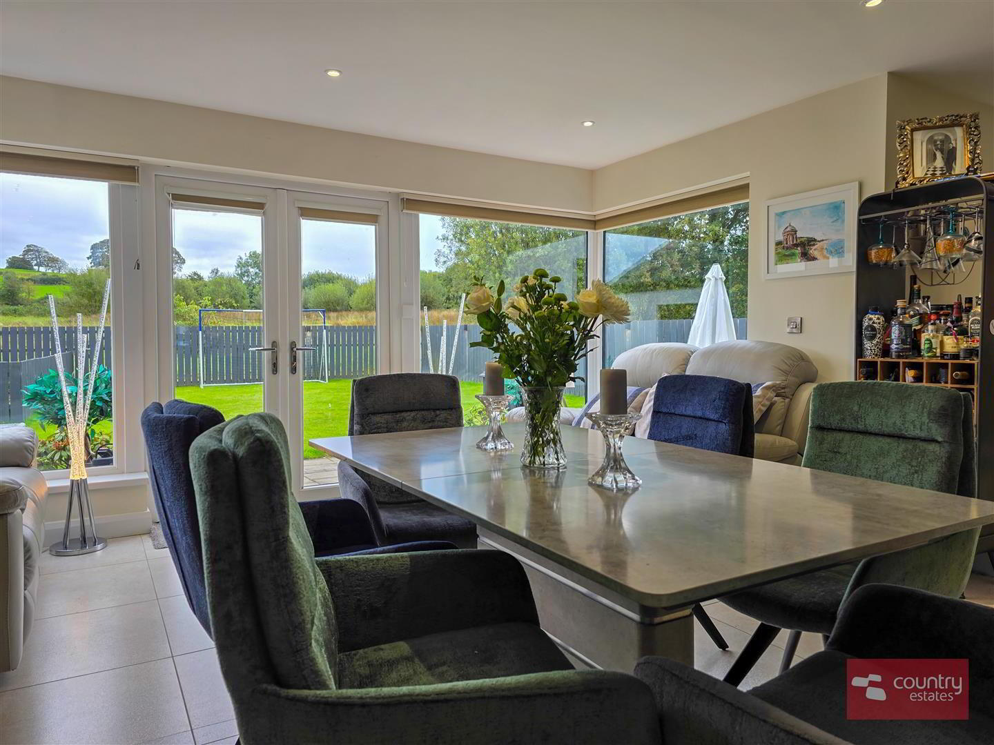 - Views over garden and fields.