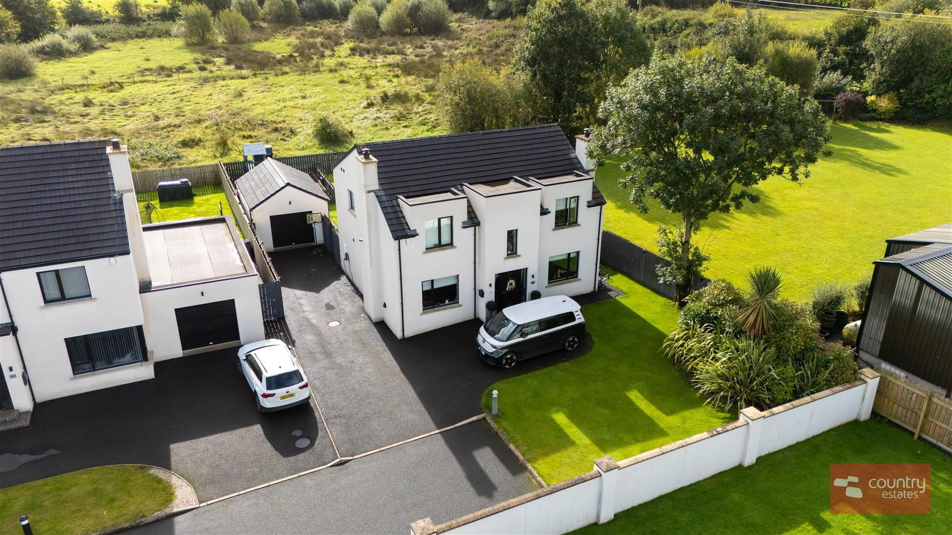 Situated on an extensive mature landscaped site extending to 0.2 acre within an exclusive select development of 5 contemporary styled detached family homes. Perfectly positioned in a highly regarded rural location yet perfectly positioned within close proximity to Templepatrick primary school, the Rabbit and Templepatrick Park and ride Belfast city centre is within a fifteen minute commute. This superb four bedroom detached family home enjoys a well planned living layout incorporating 2+ receptions plus an open plan living / kitchen / dining layout boasting a quality shaker kitchen and modern utility room. This property is the perfect purchase for the family searching for a home that blends country living with modern conveniences such as solar panels on the rear elevation and a fixed electric vehicle charging point. An early viewing is recommended.