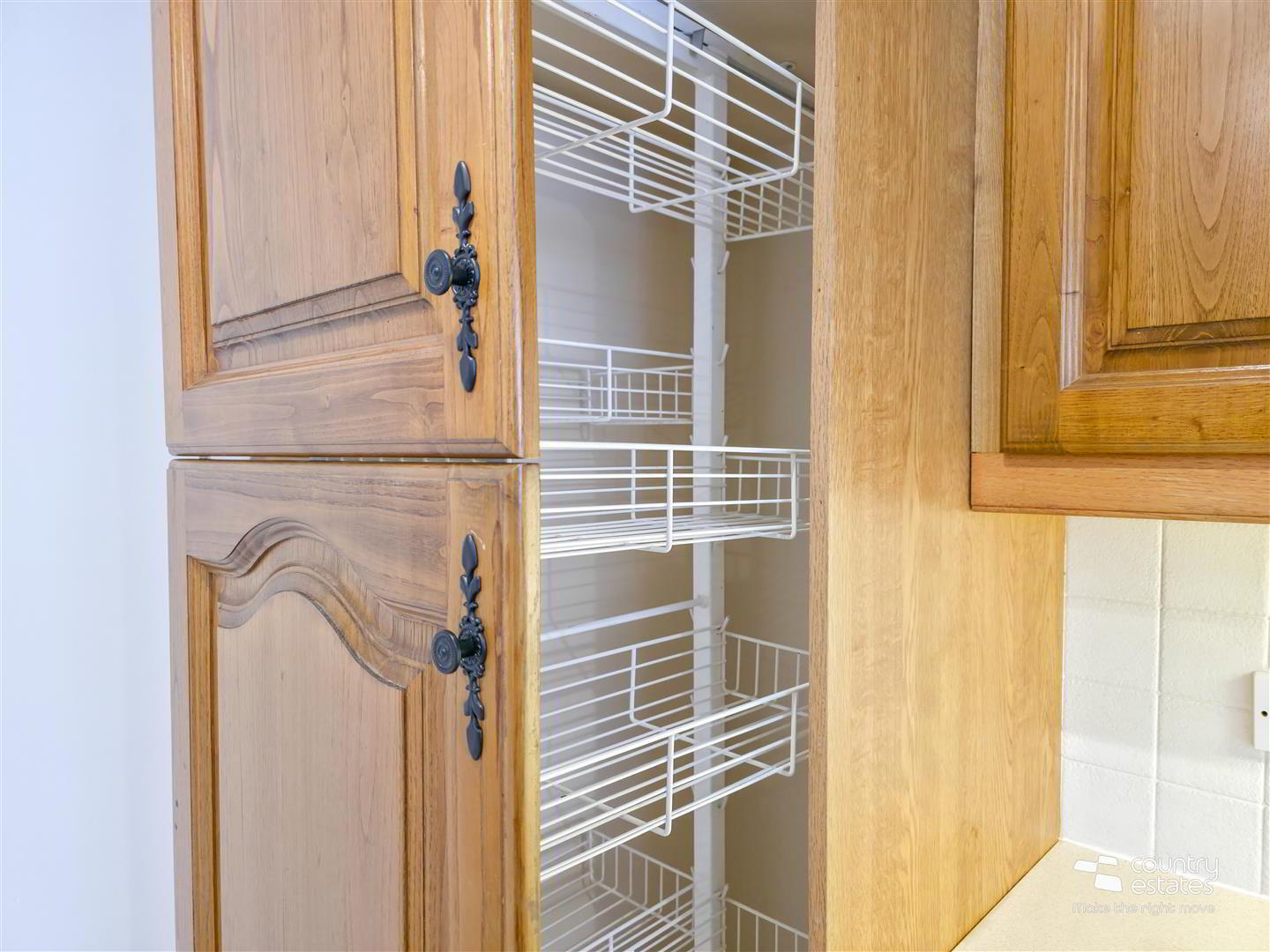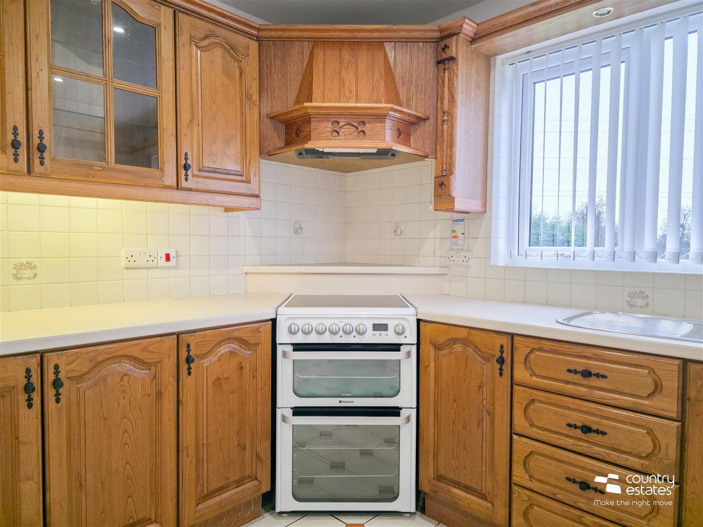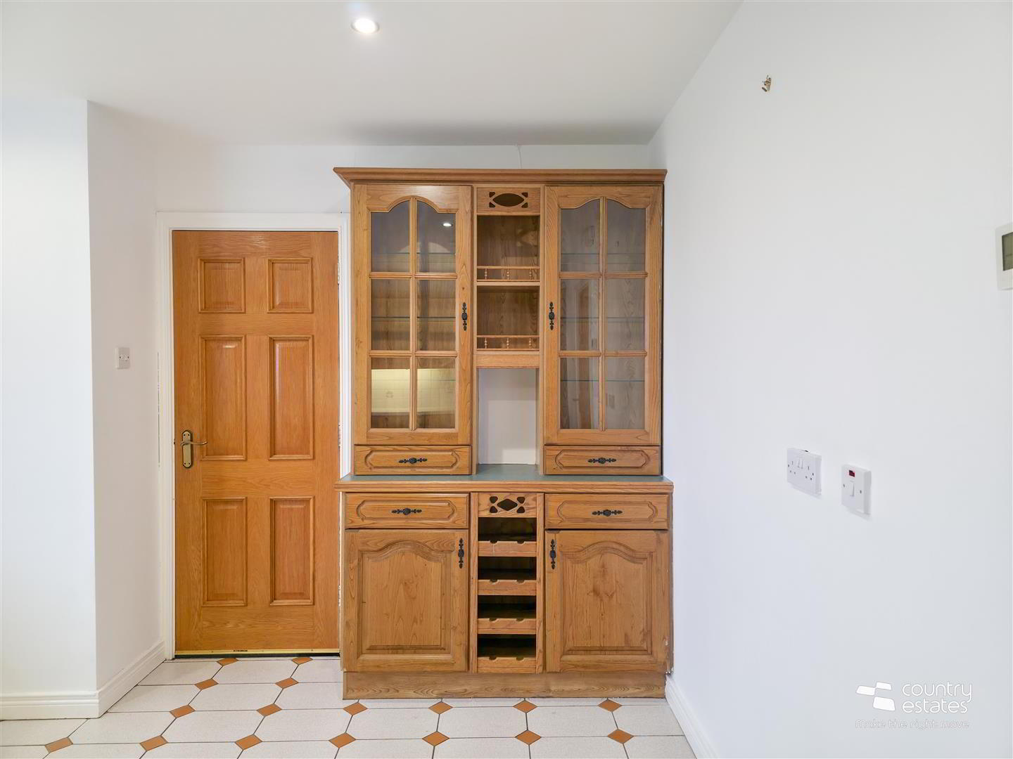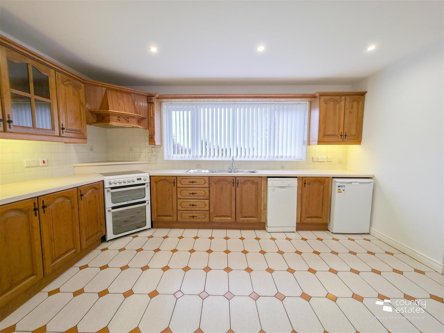 - Equipped with a comprehensive range of high and low level shaker style fitted units and contrasting work surfaces. Double bowl single drainer stainless steel sink unit with traditional mixer tap. Space for free standing oven with over head extractor fan housed in matching canopy. Plumbed for dish washer. Space for free standing under counter fridge. Pull out larder cupboard. Twin glass display cabinets. Recessed downlighting. Tiled floor. Part tiled walls. Ample space for casual dining.