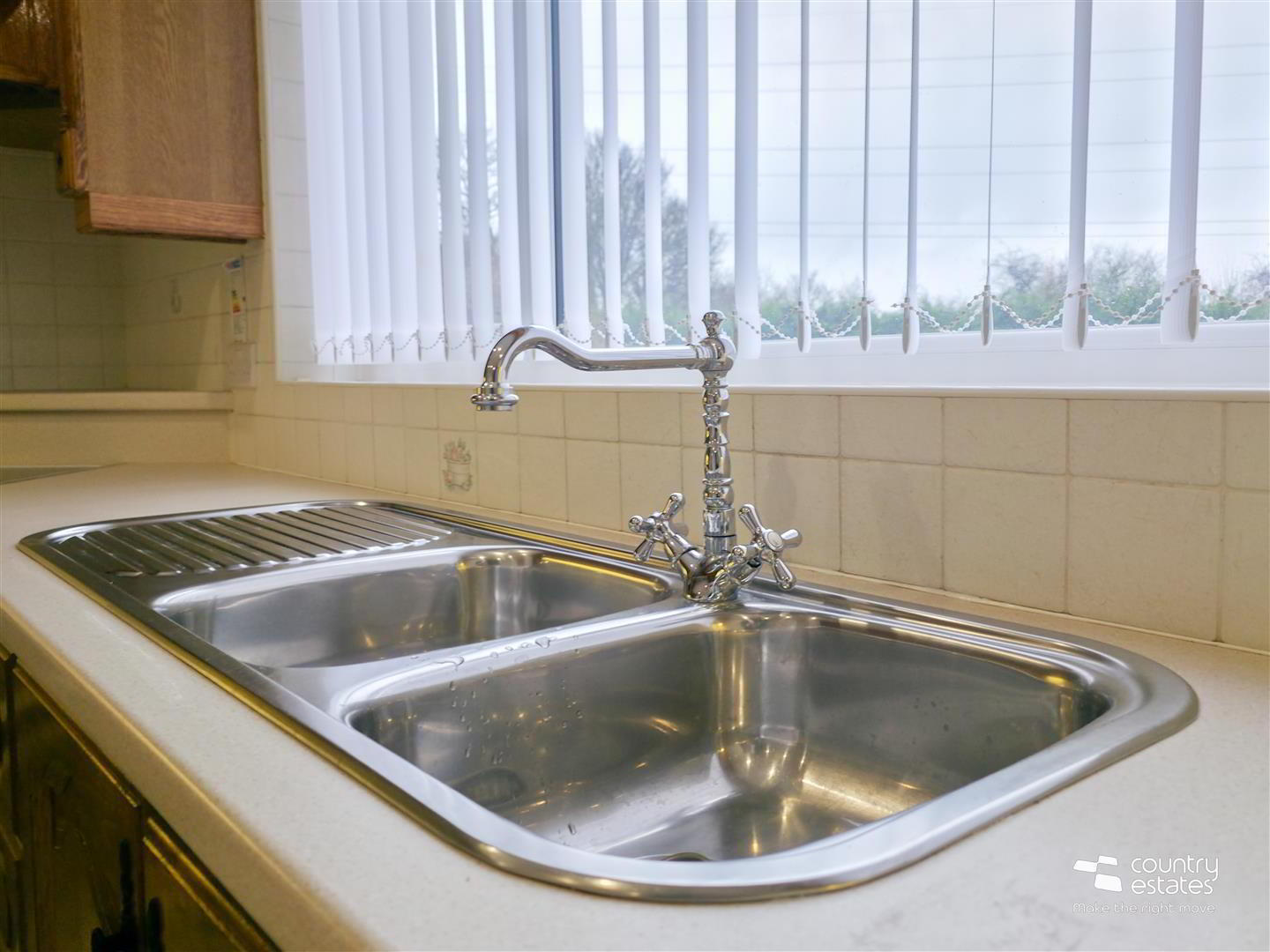 - Equipped with high level shaker style fitted units for storage and contrasting work surfaces. Single drainer stainless steel sink unit with mixer tap. Plumbed for washing machine. Space for tumble dryer. PVC double glazed door to rear garden. Service door to Double garage.