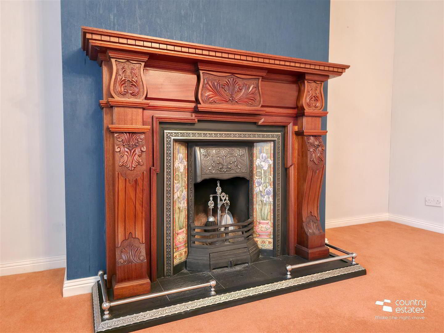 - Attractive feature mahogany fireplace with cast iron inset fire and slate hearth. Feature bow window.