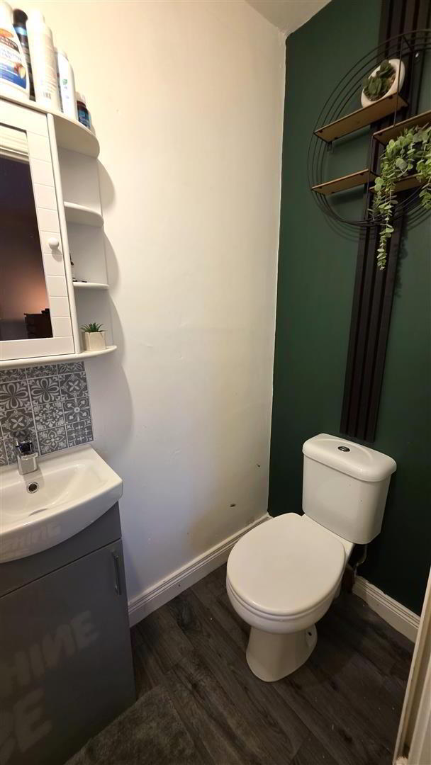 Upon entering, you are greeted by a cosy reception room, ideal for relaxing or entertaining guests. The ground floor features a convenient W/C, adding to the practicality of the home.