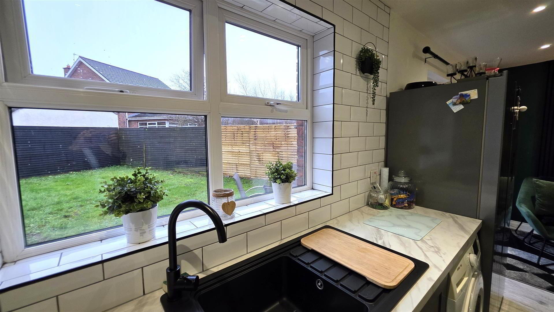 - Fully enclosed rear garden with six foot timber fencing and pedestrian gate to front. PVC double glazed service door to detached garage. Paved patio area with addition of mixed stone bedding. Neat lawn. Outside tap and outside lighting.