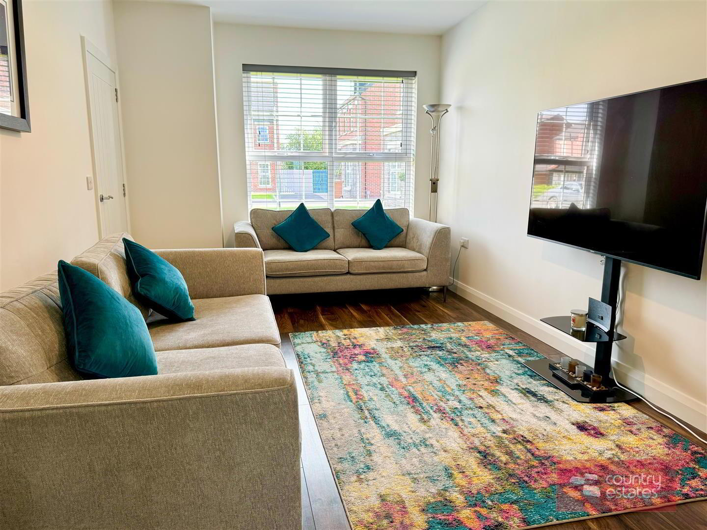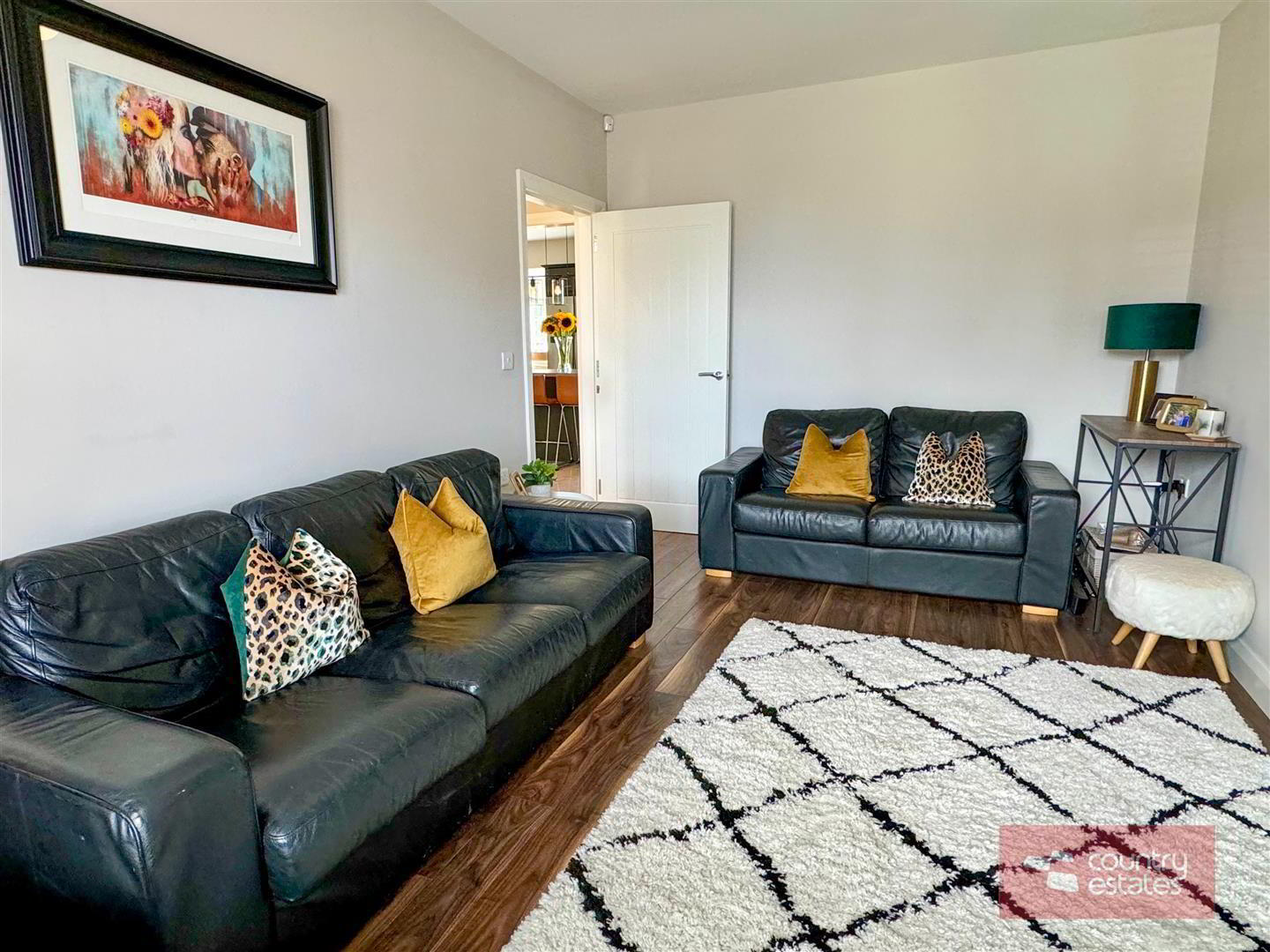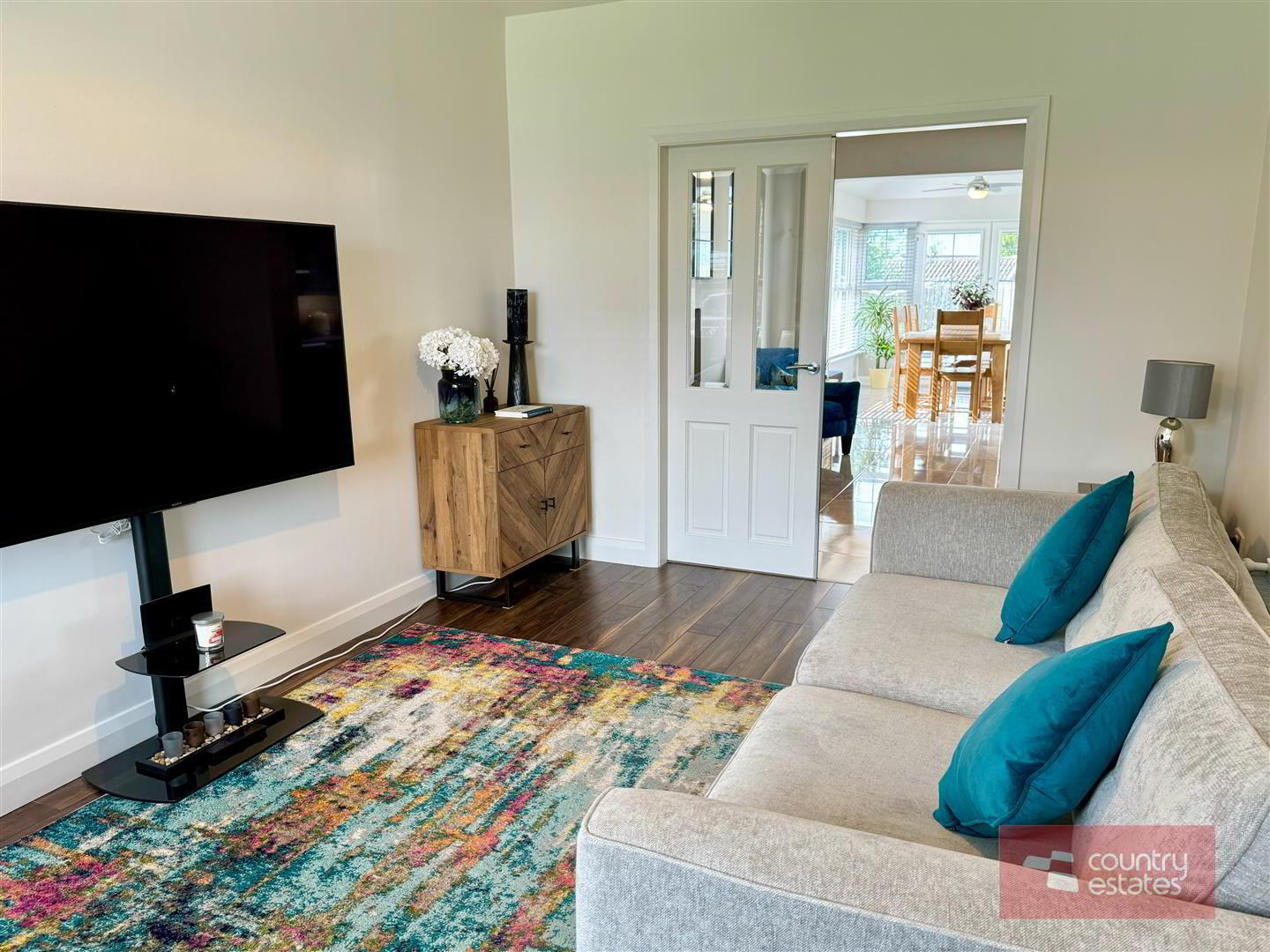 - Picture window to front elevation. Quality walnut effect laminate plank flooring. Twin glass panelled French doors leading to: