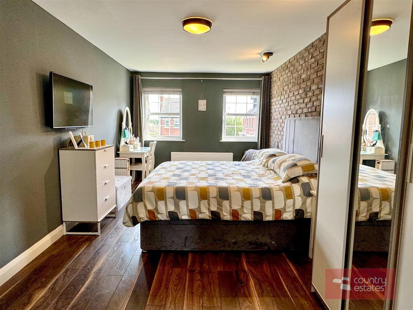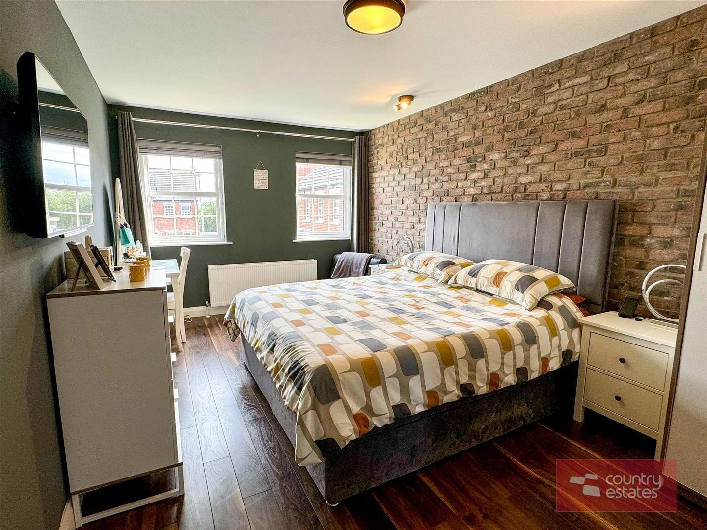 - Exposed brick feature accent wall. Quality wood effect laminate flooring. Dual window aspect. Open through to: