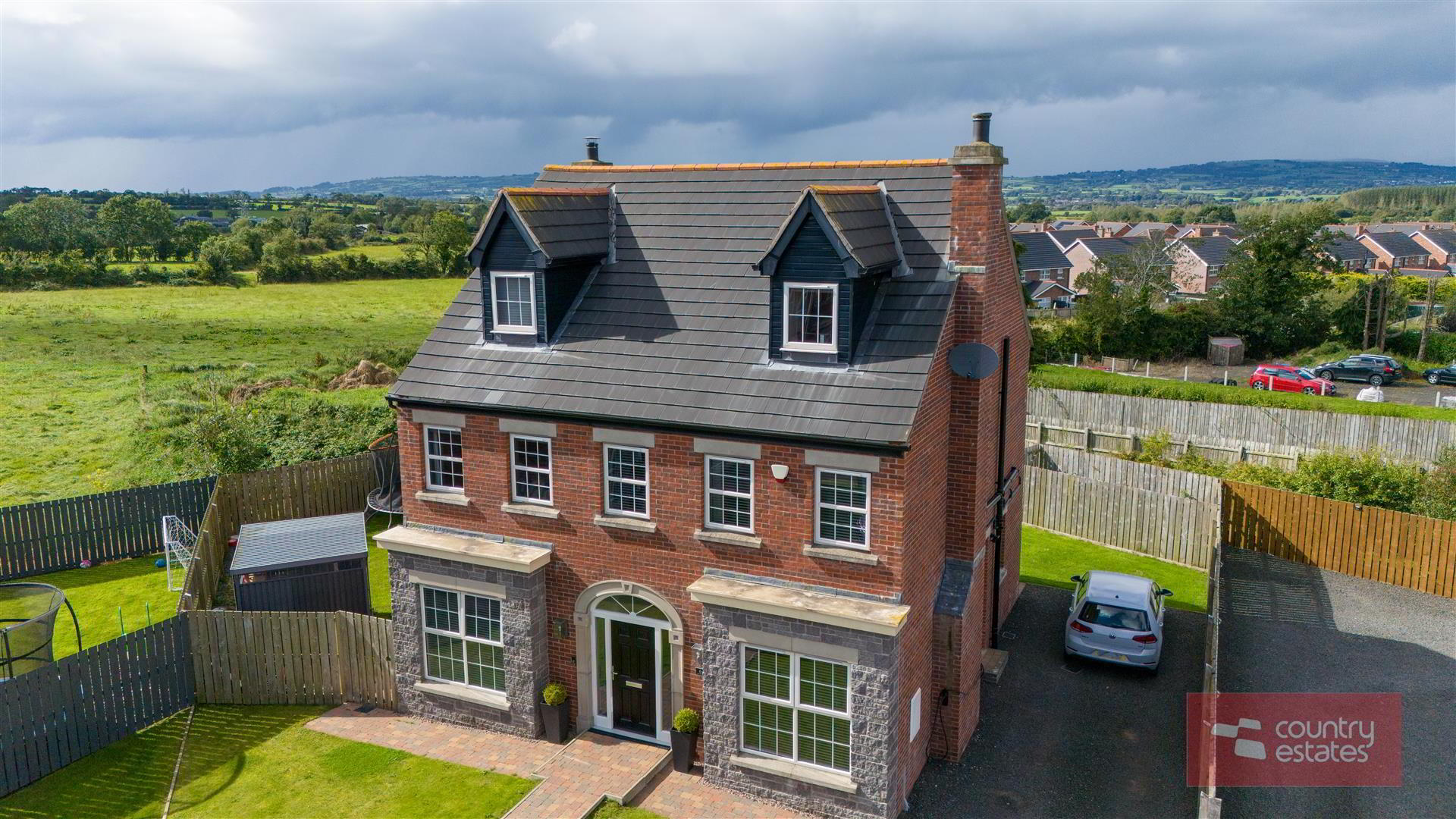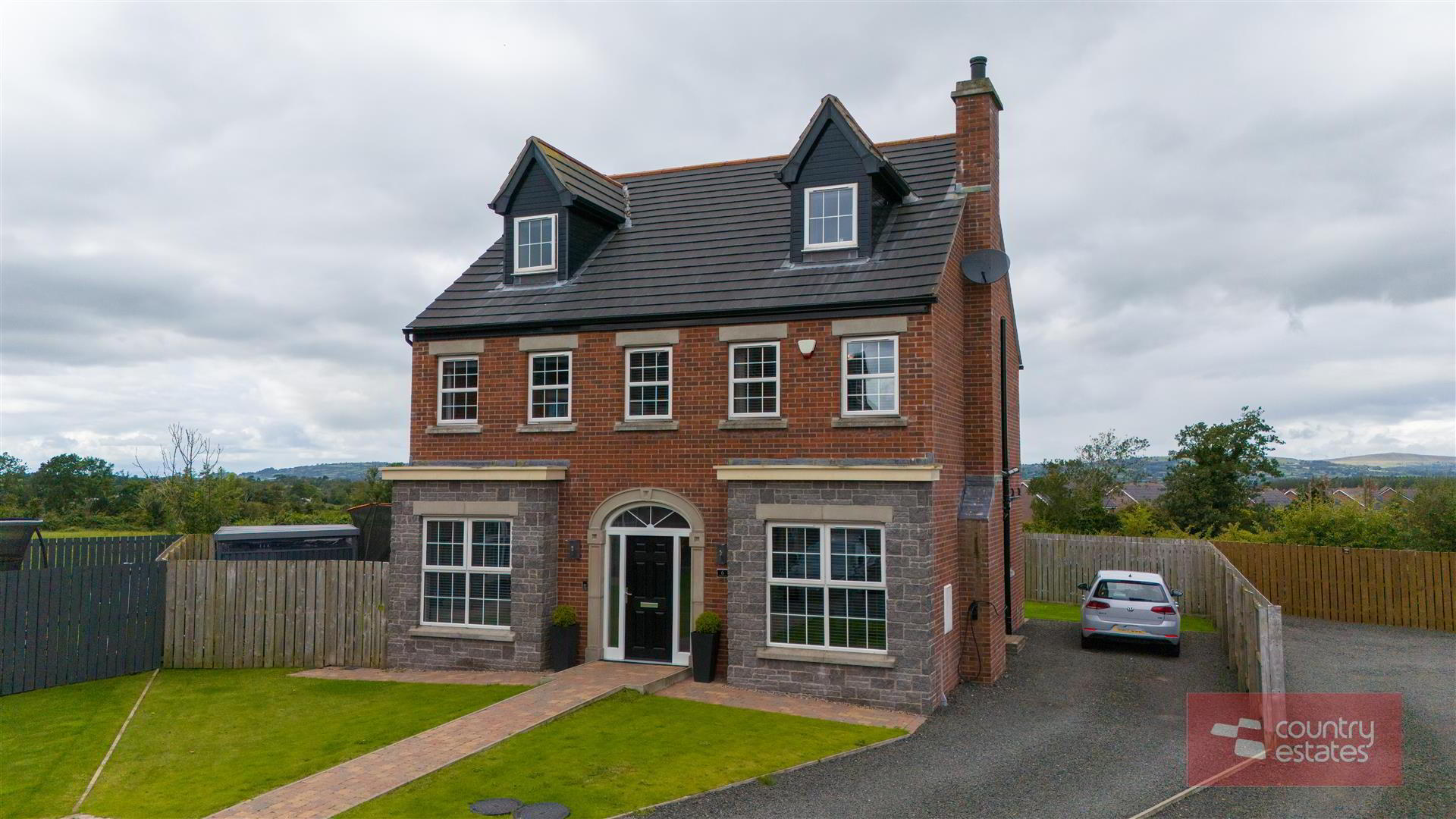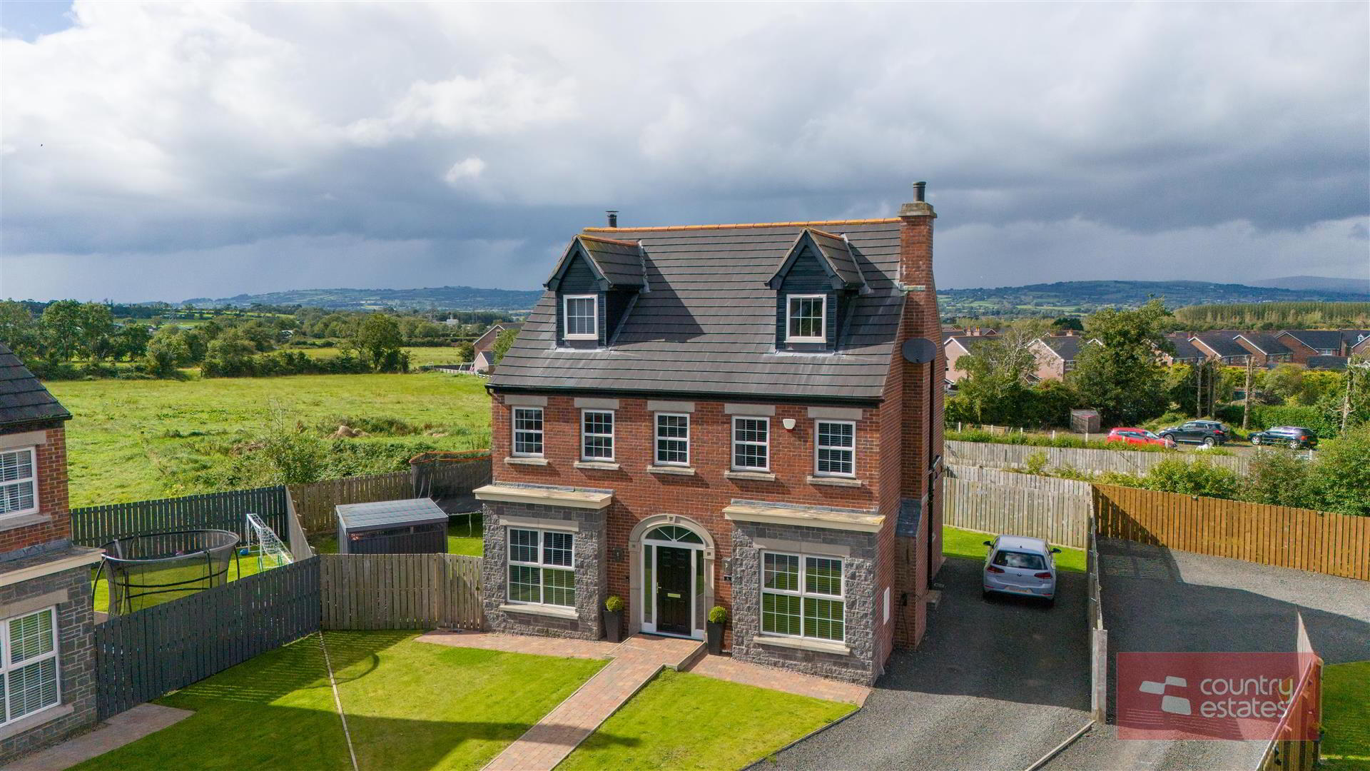 Situated within the highly sought after Ballyrobert Village. Number six Earlsfort is positioned within a select courtyard style development of 8no detached family homes. Beautifully presented throughout this impressive double fronted property enjoys a well planned spacious living layout over three floors briefly comprising 5 bedrooms, two deluxe ensuites, master bedroom with walk through dressing room / wardrobe and a superb open plan contemporary kitchen with a living / dining aspect plus sun lounge extension. Enjoying an extensive private rear garden with views over the surrounding countryside an early viewing is recommended.