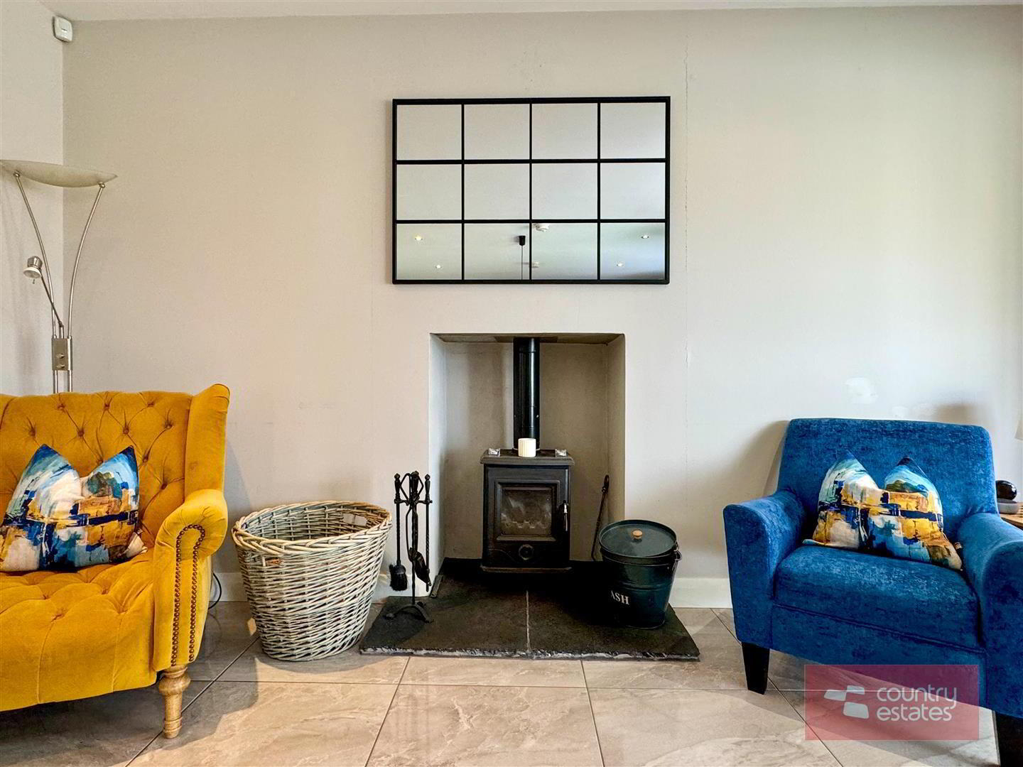 - Inglenook recess for stove. Picture window to front elevation. Quality walnut effect laminate plank flooring.