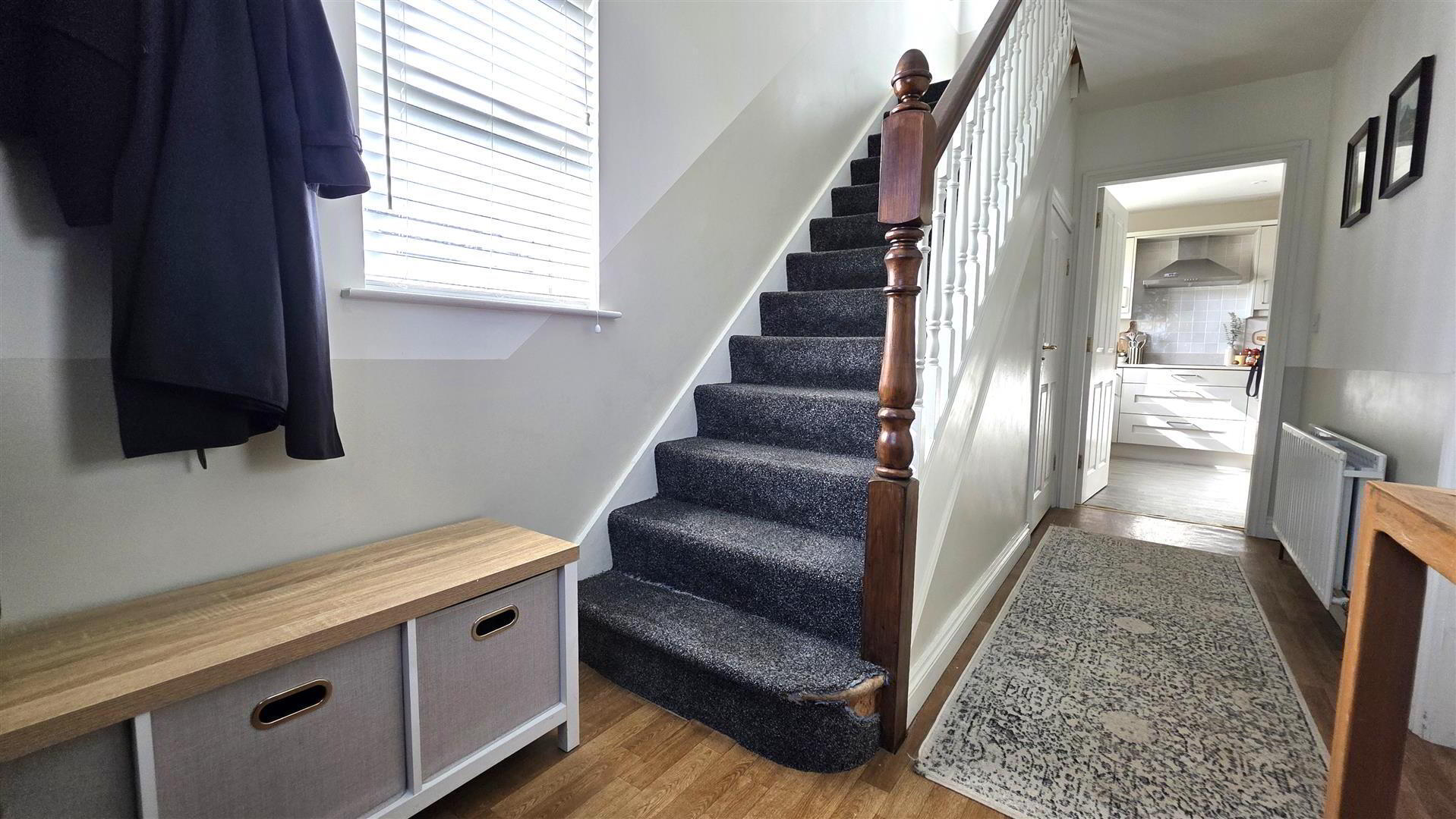 - Staircase to first floor with moulded hand rail and turned balustrade. Double radiator.