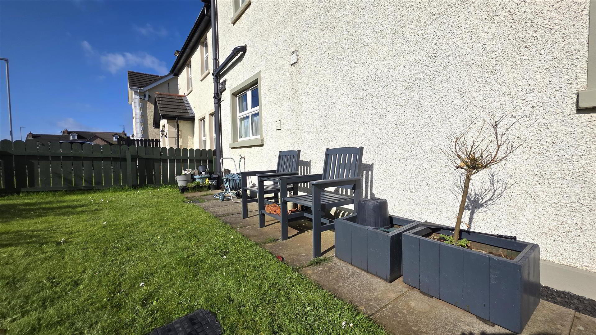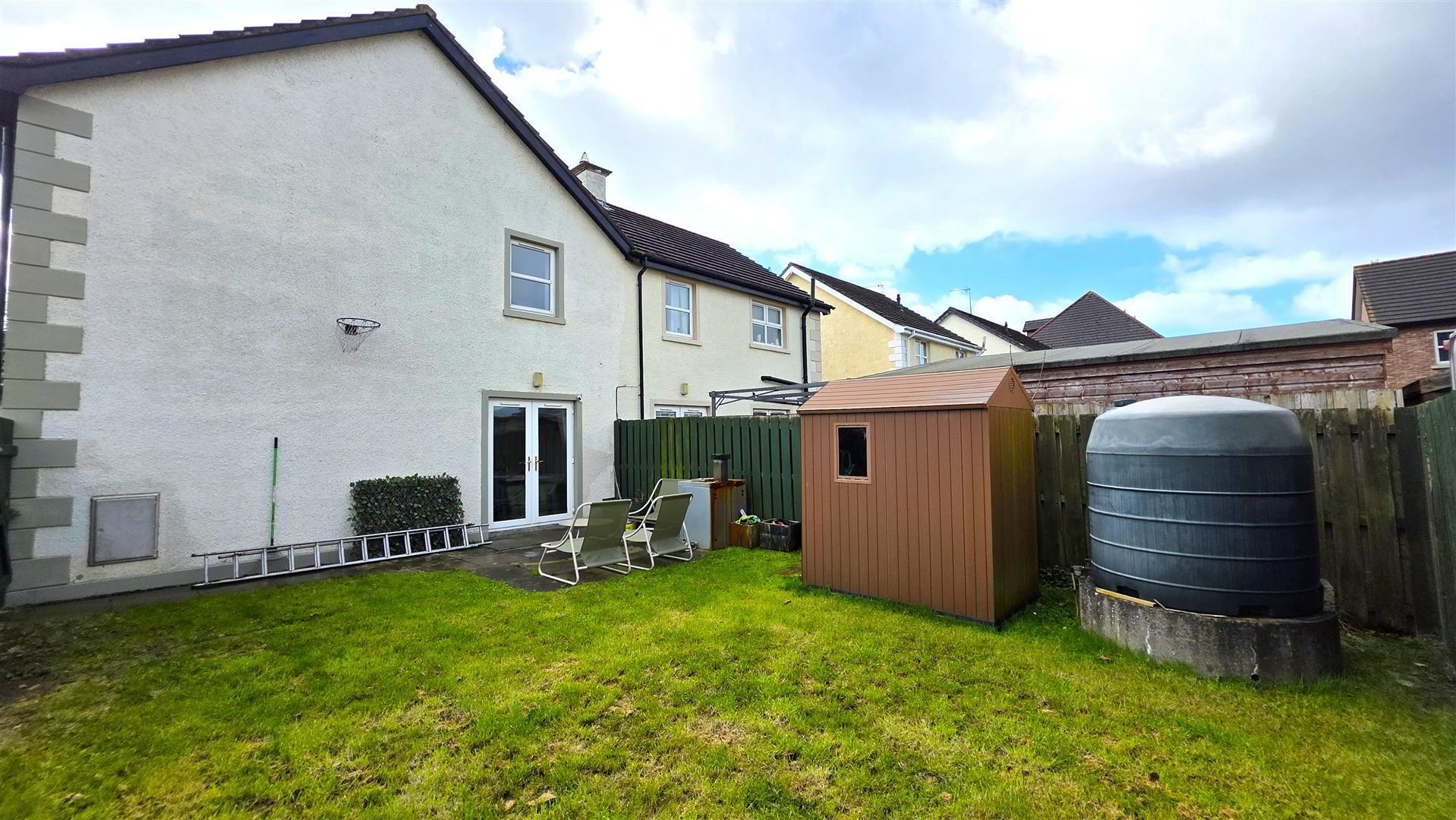 Timber pedestrian gate to fully enclosed garden to rear in lawn and paved patio. 6ft timber fencing. Space for garage. PVC oil tank. Galvanised prefabricated oil-fired boiler house. - IMPORTANT NOTE TO ALL POTENTIAL PURCHASERS;