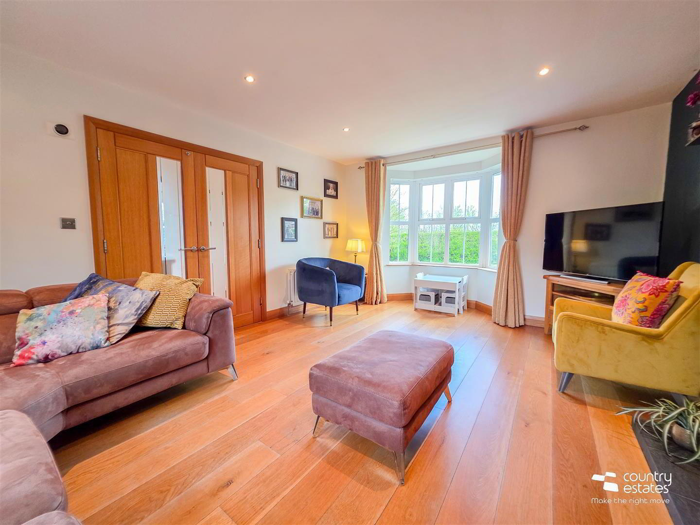 - Attractive feature cast iron horseshoe fireplace with slate hearth. Hard wood flooring. Feature bow window. Recessed downlighting.