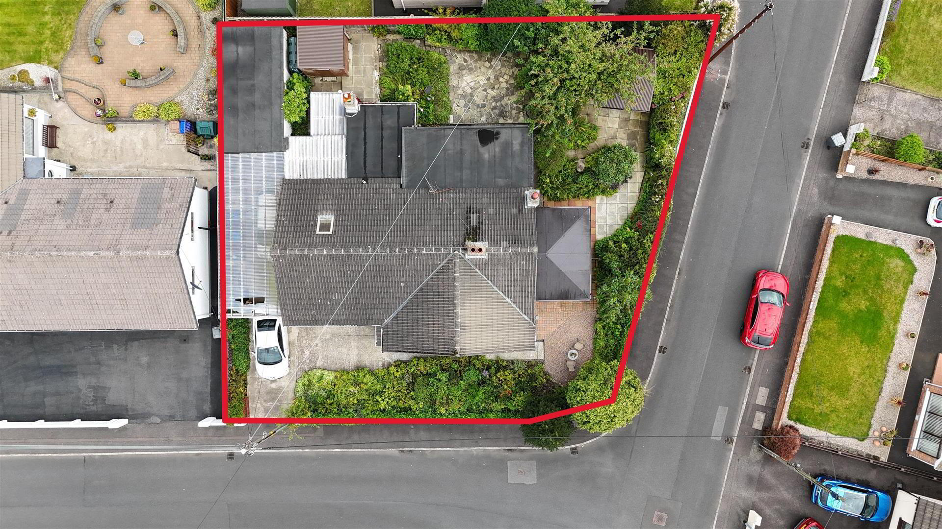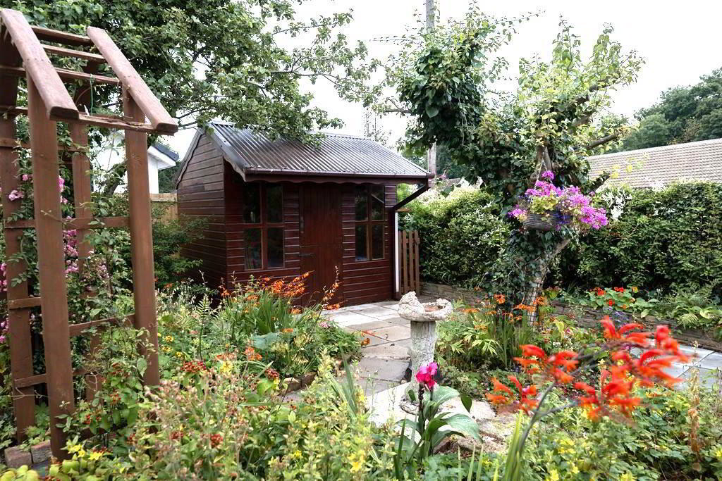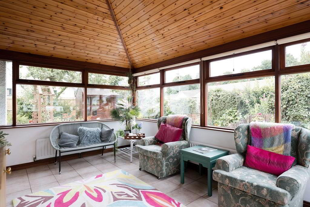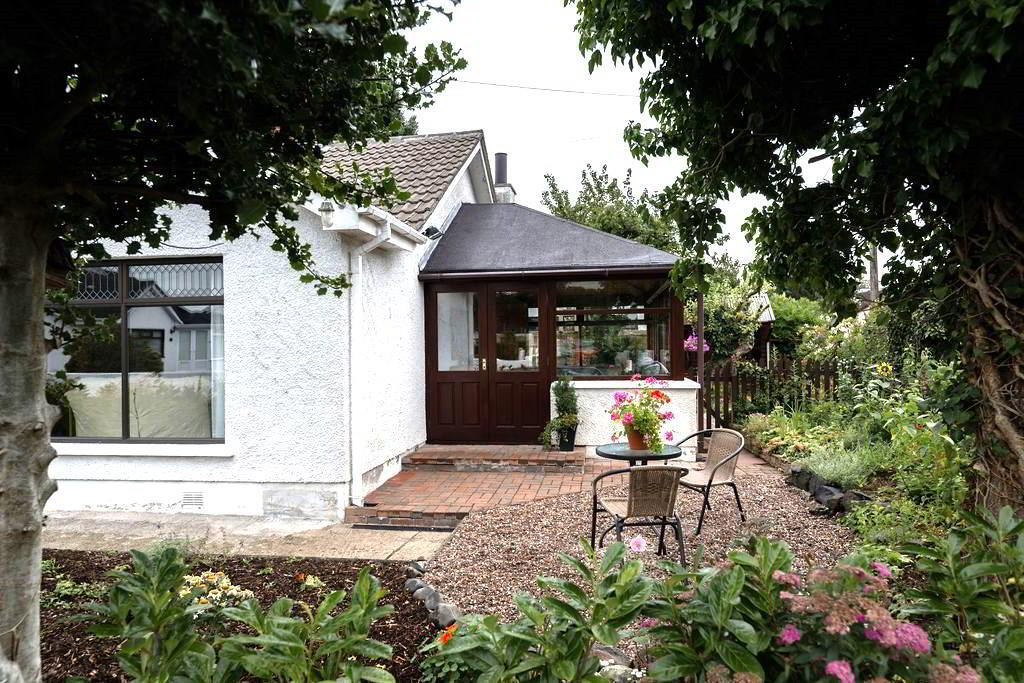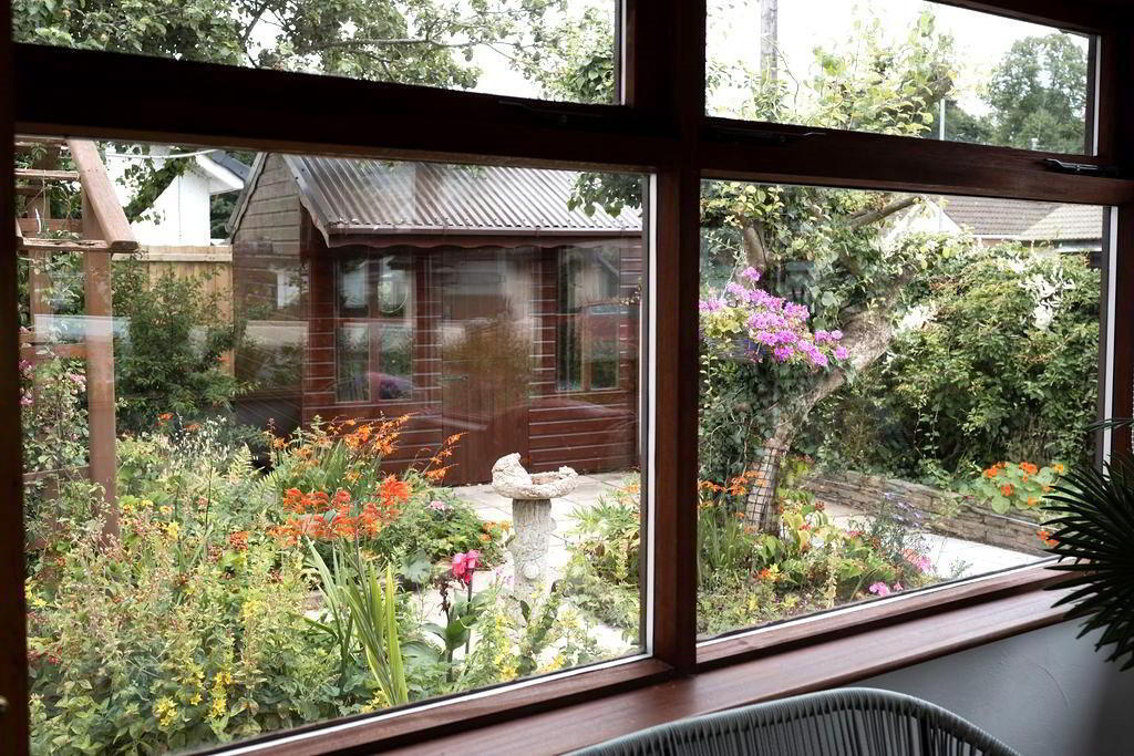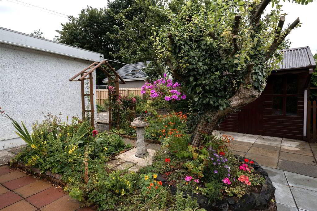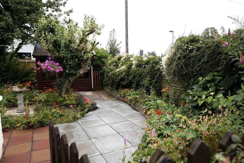 - Beautiful rear garden offering excellent privacy and sun orientation. Featuring Paved enclosed patio areas, raised mature flower bedding leading too extremely well landscaped paved walkways encircling mature flower bedding. Two further patio areas, one with access to outside garden room with electrics. PVC oil tank. Outside tap and outside lighting.
