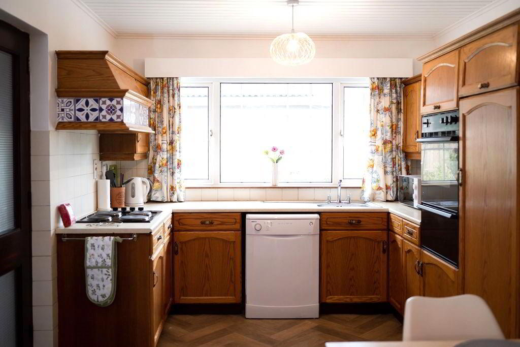 - Full range of high and low level solid oak kitchen units with complimentary work tops and splash back tiling. Integrated appliances to include a four ring ceramic hob with concealed over head extractor fan, "Neff" eye level double oven and grill, integrated fridge. Space for dish washer. Single drainer stainless steel sink with chrome mixer tap. Pantry with shelved storage. Hot press with insulated copper cylinder. Single radiator. Glass panel door to rear.