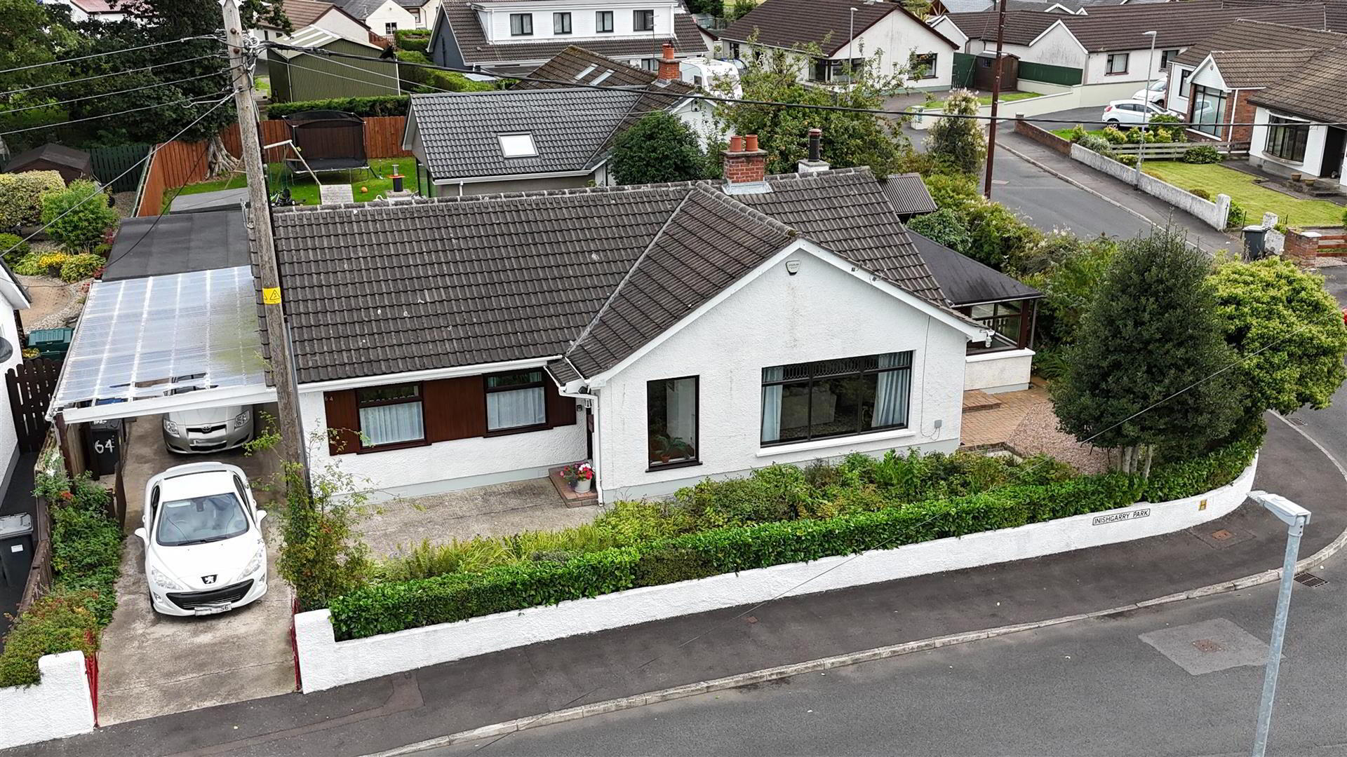 This is a superb opportunity to purchase a well appointed three bedroom detached bungalow with detached garage occupying a generous corner plot in a prime position within this sought after residential location within easy access of Antrim Castle Gardens and the town centre where all amenities and transport facilities are readily accessible. Benefiting from double glazed windows and oil-fired central heating this delightful property also boasts a spacious living room open to separate dining room with access to a well appointed kitchen with full range of solid oak high and low level units and integrated double oven and hob. In addition added conservatory leads too beautifully landscaped gardens come with a separate garden room.