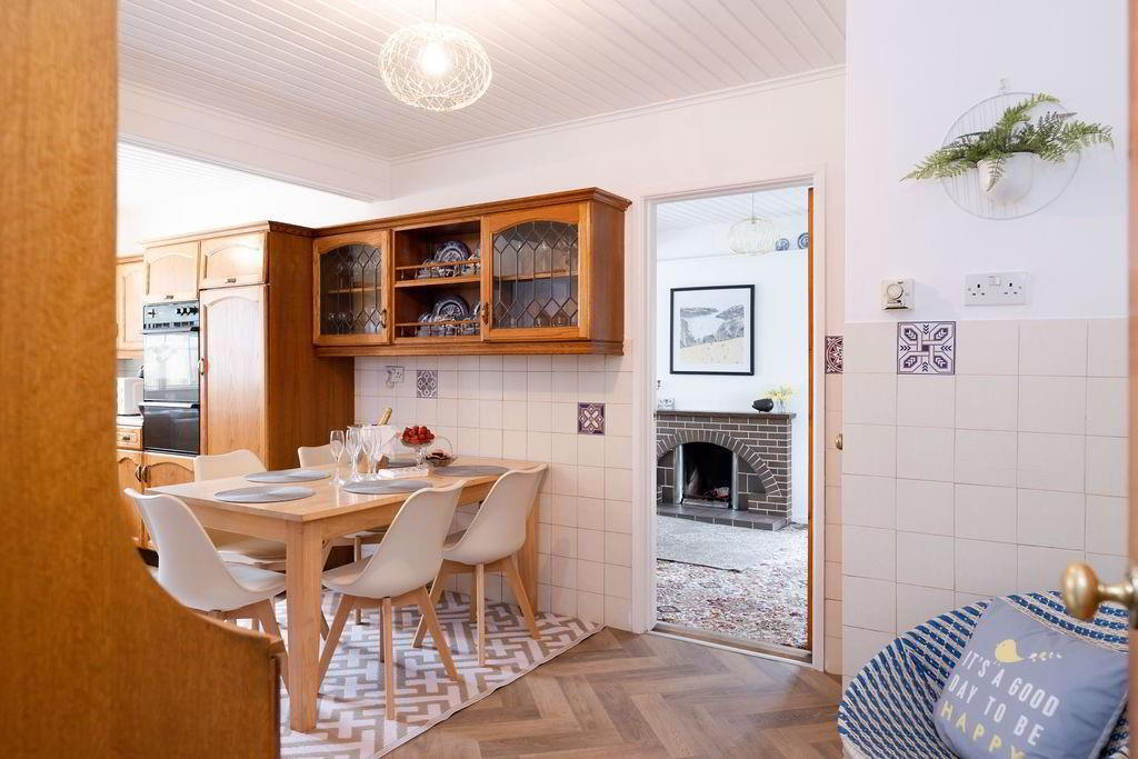 - Low level kitchen units with single drainer stainless steel sink unit with chrome hot and cold taps. Space for washing machine and tumble dryer. Oil fired boiler.