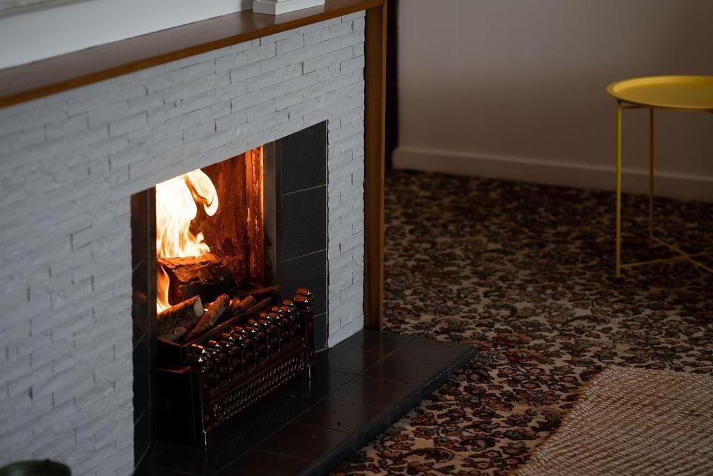 - Feature fireplace with tiled hearth, surround, cast iron inset and back boiler. Two double radiators. Glass panelled sliding door to: