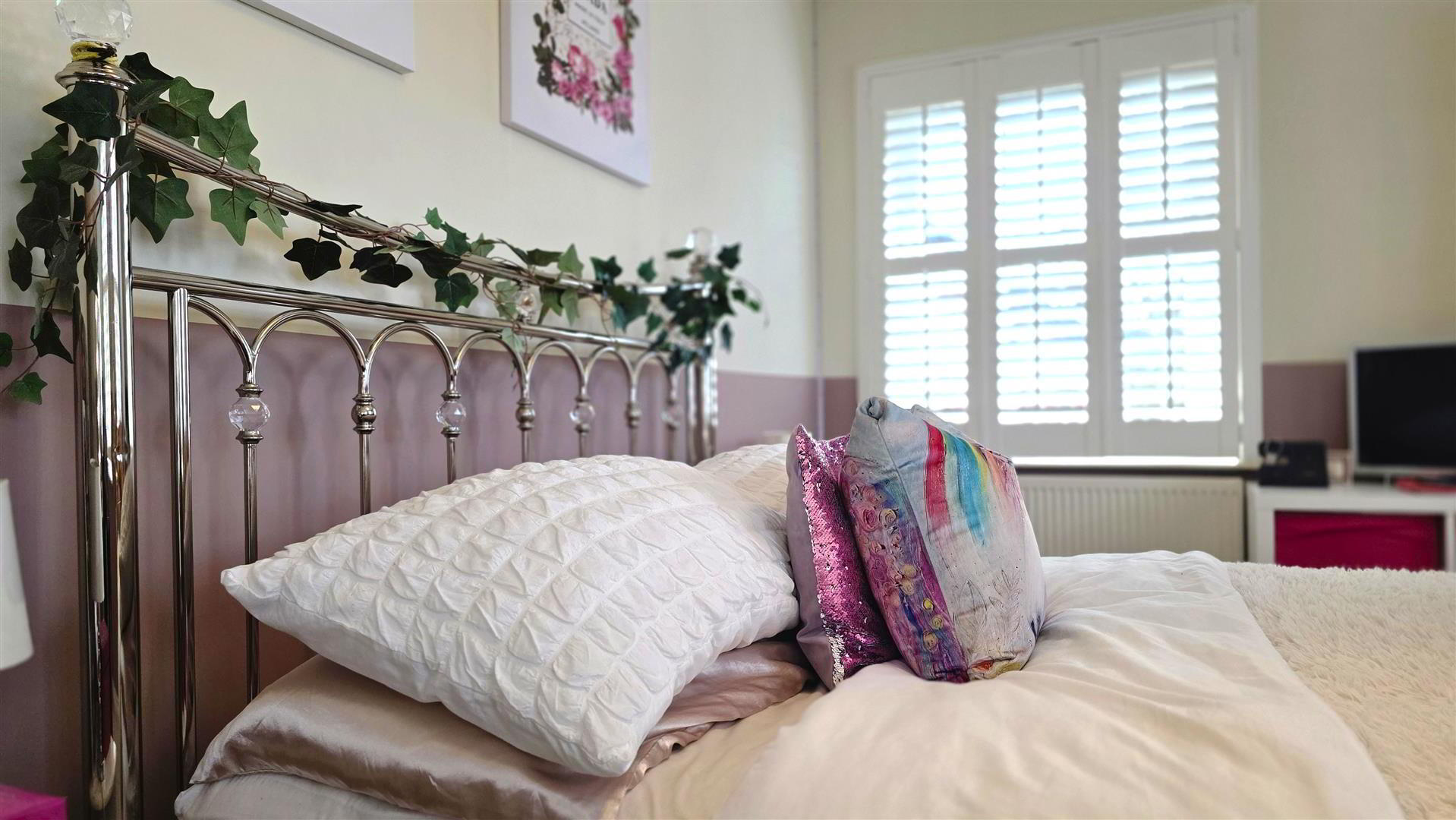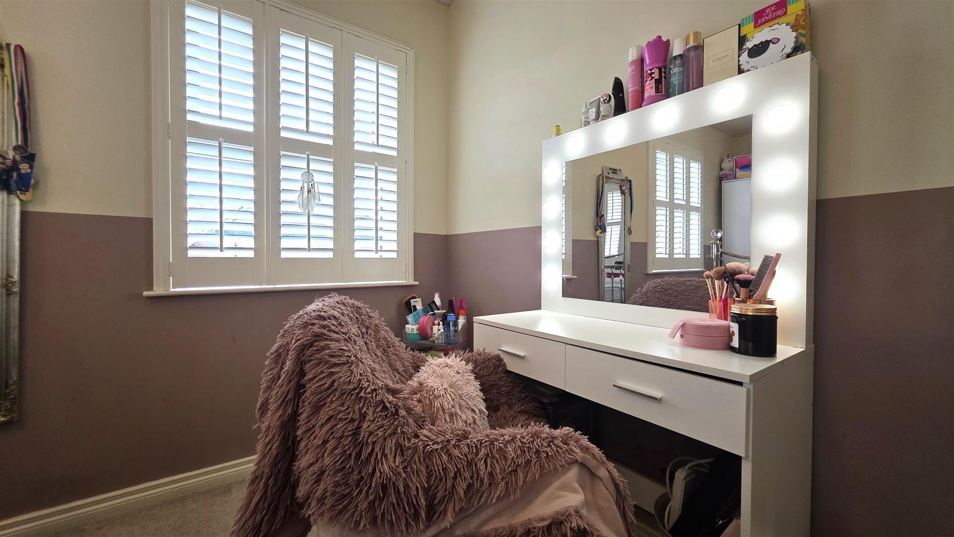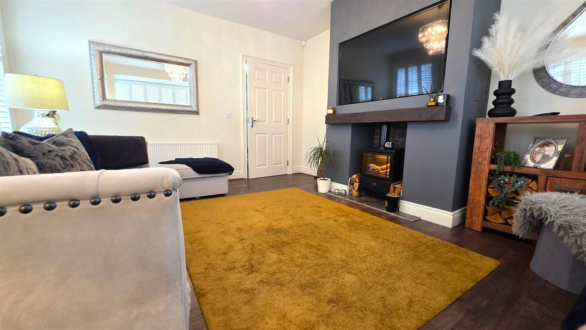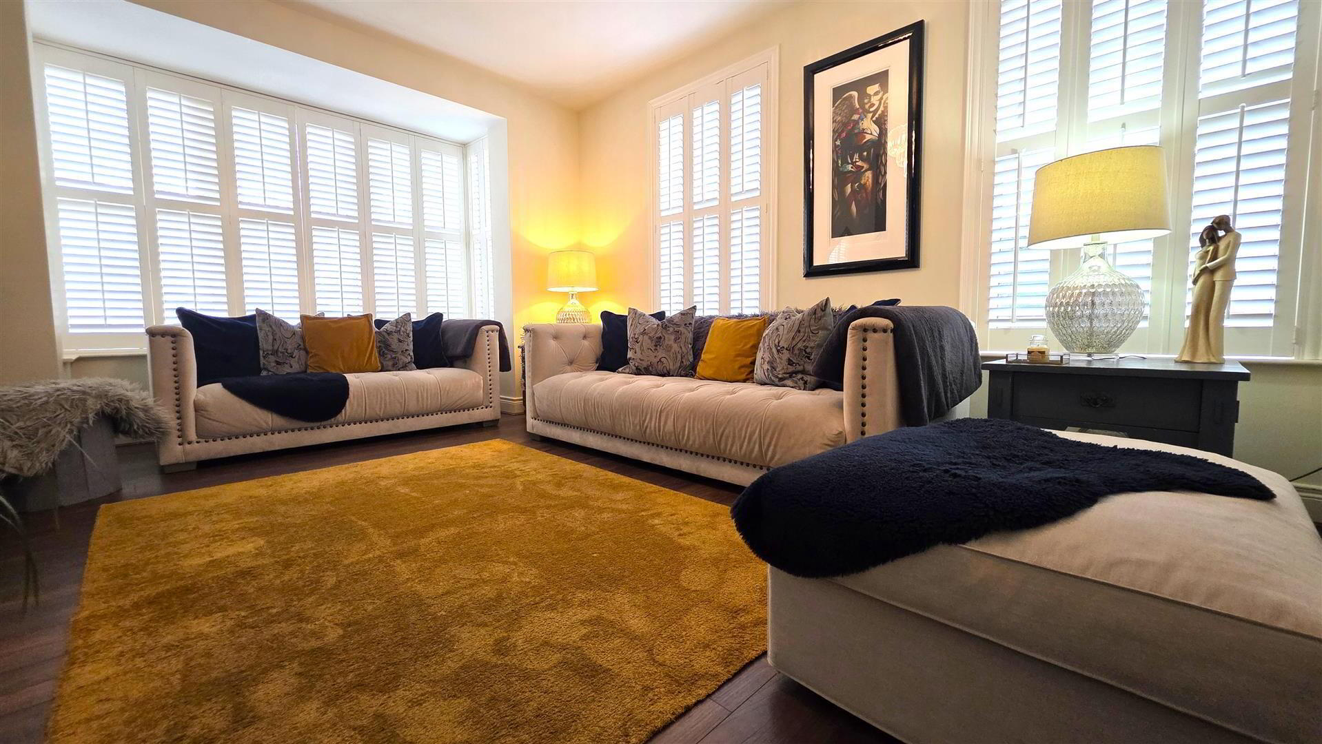 - (into bay). Media wall with space for 60" TV, walnut coloured mantle and inset space for electric stove. Slate hearth. Walnut wood laminate flooring. Dual aspect windows. Double radiator.
