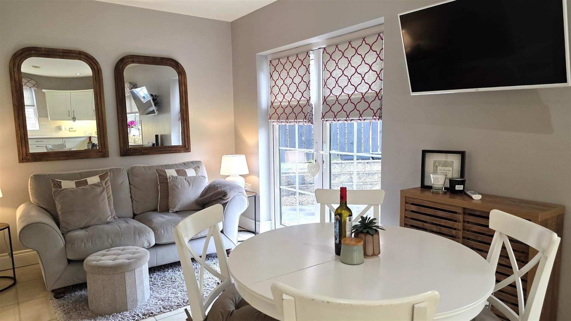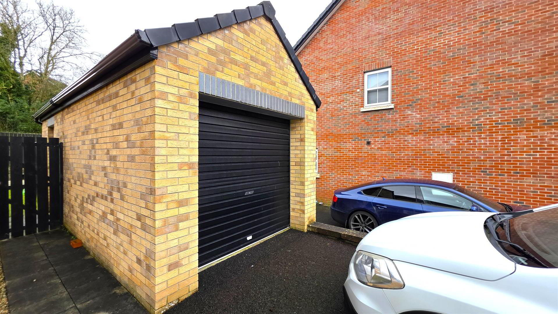 - Double tarmac driveways to either side providing off-street parking and access to detached garage. Timber pedestrian gates to either side accessing fully enclosed garden at rear in neat lawn, paved patio and additional raised patio area. Pre-fabricated oil-fired boiler house. Raised border and 6ft timber fencing. PVC tank. Outside tap and light.
