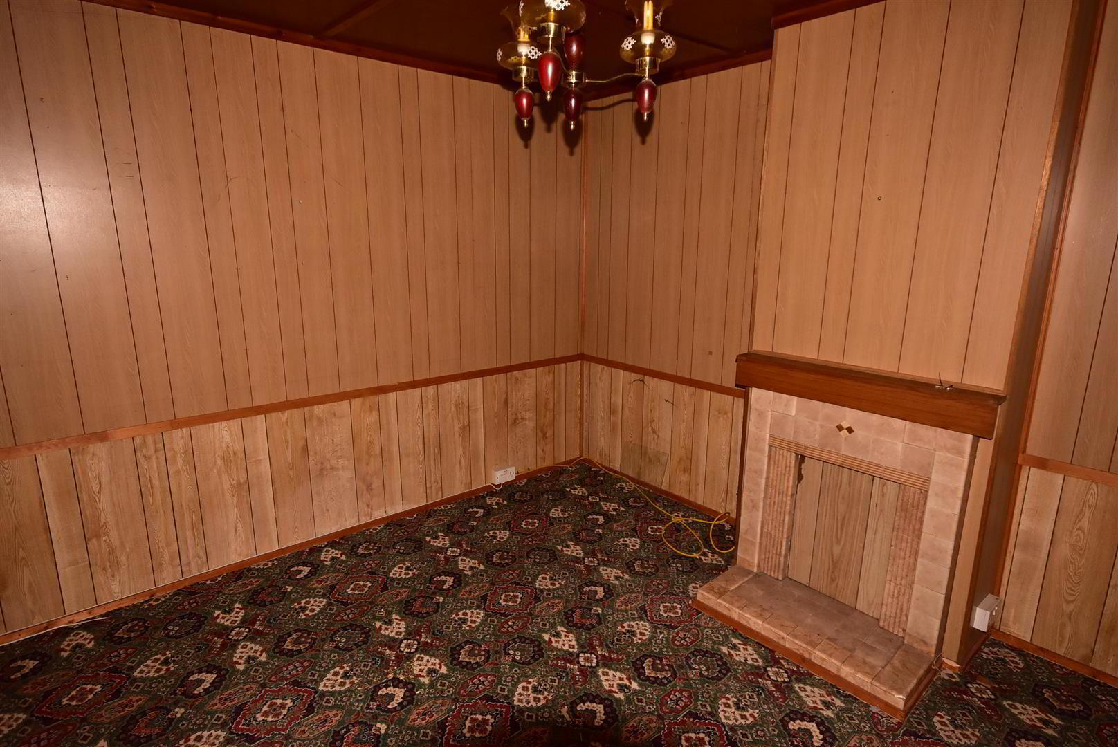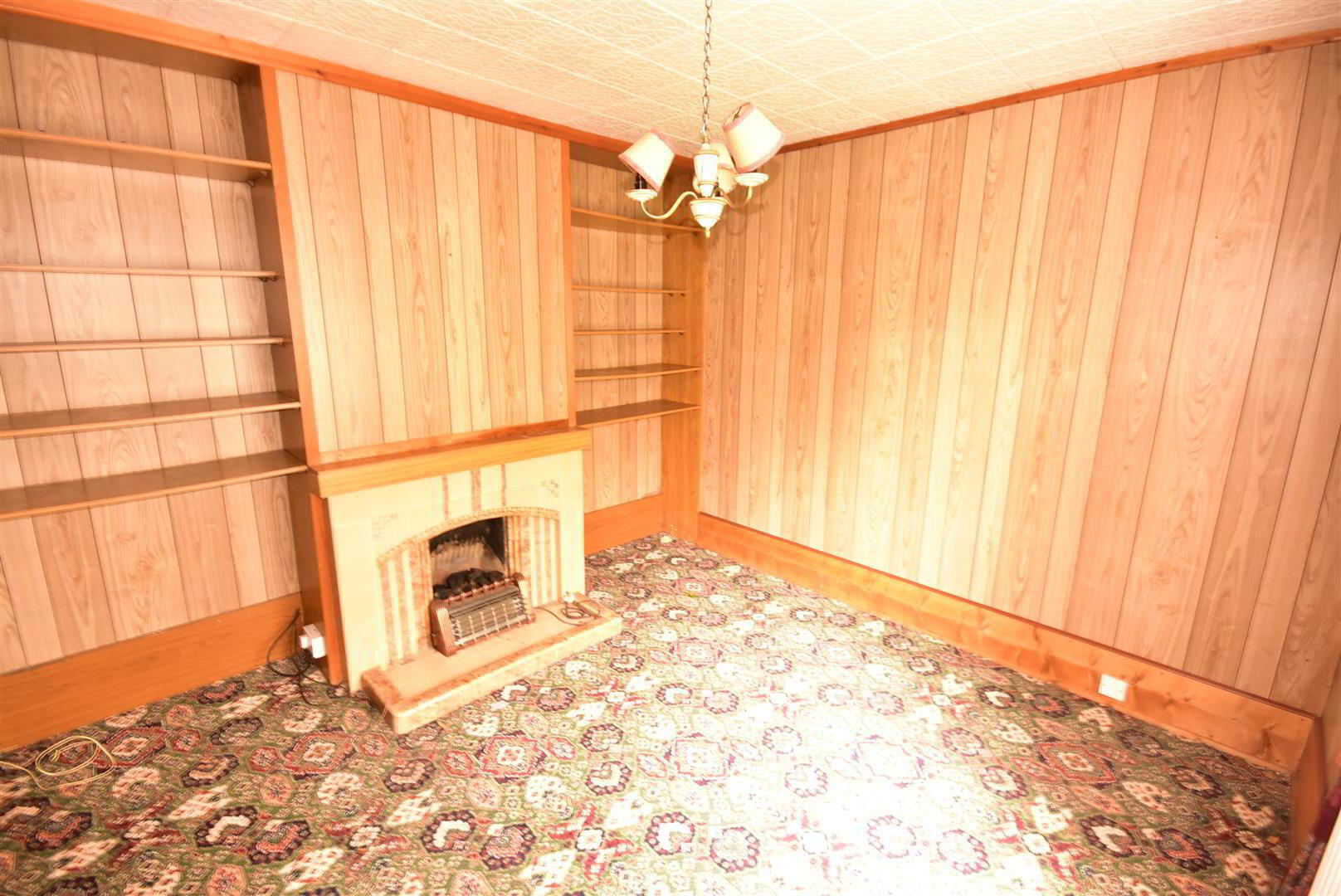- Open fire with dated tiled surround. Beauty board to walls. Polystyrene ceiling tiles. Radiator.