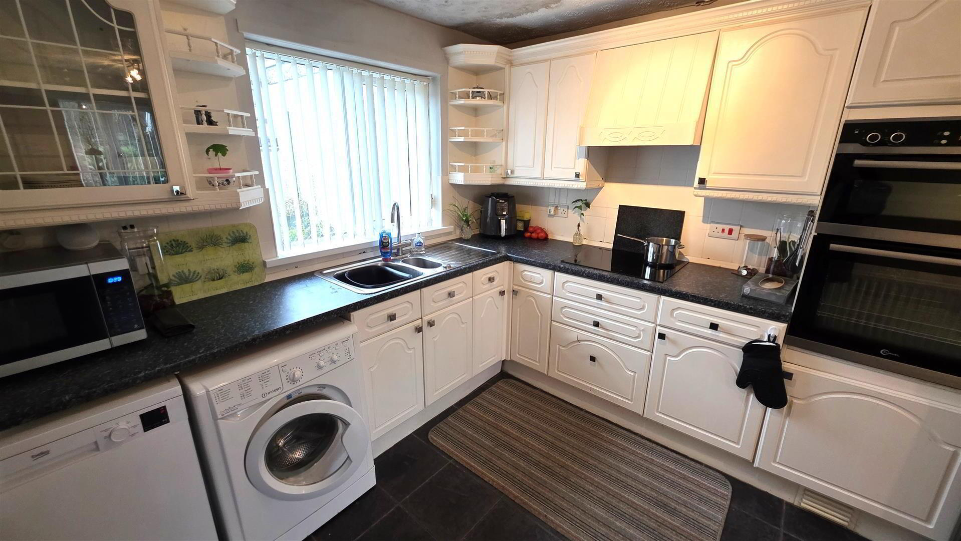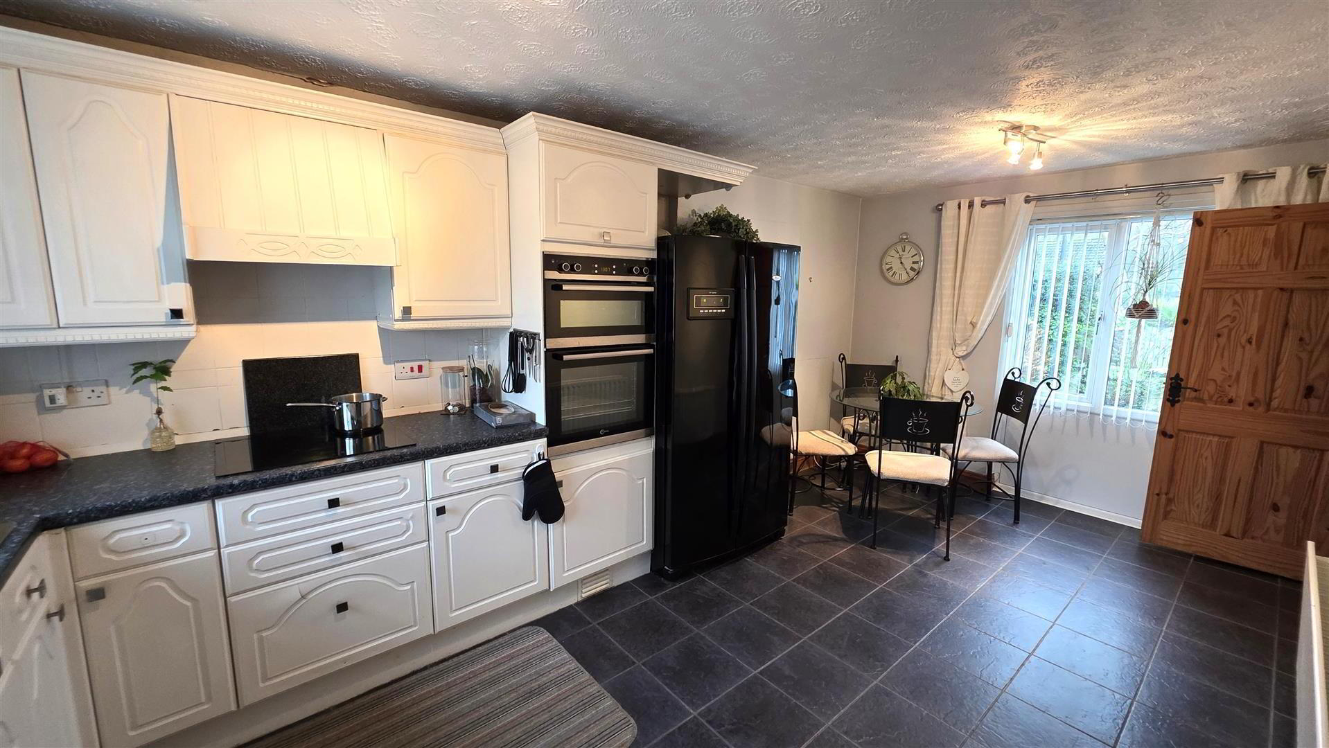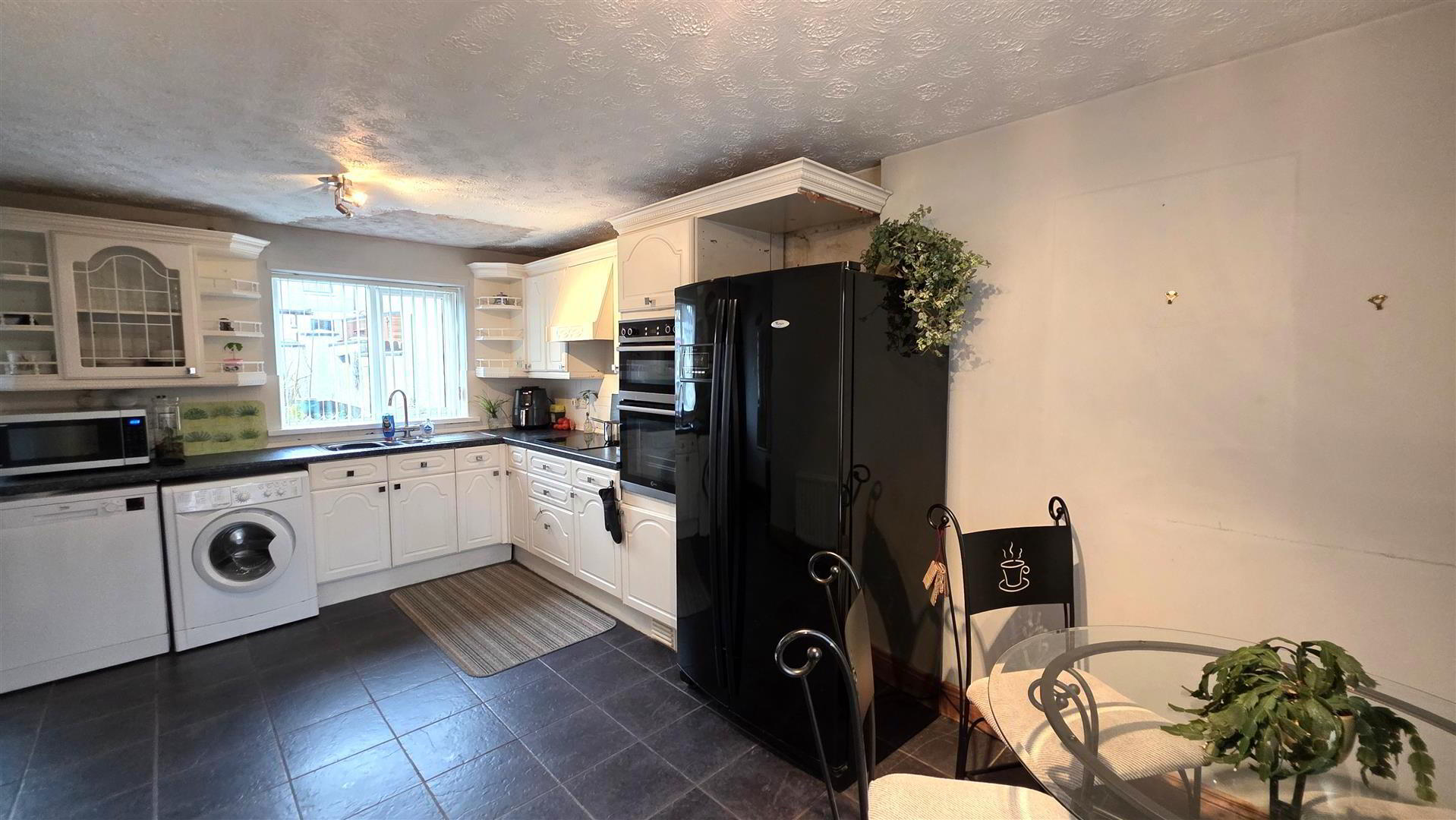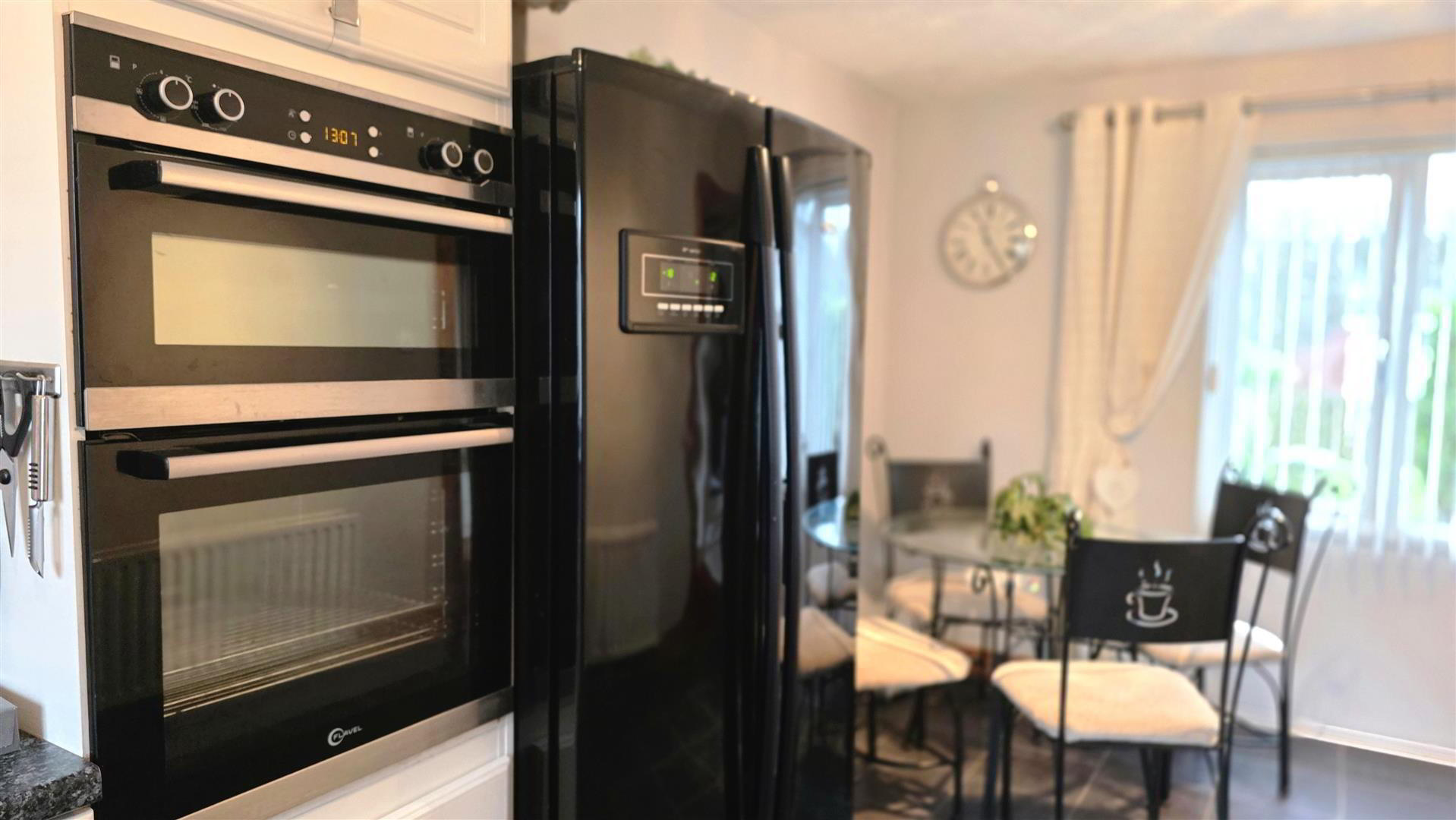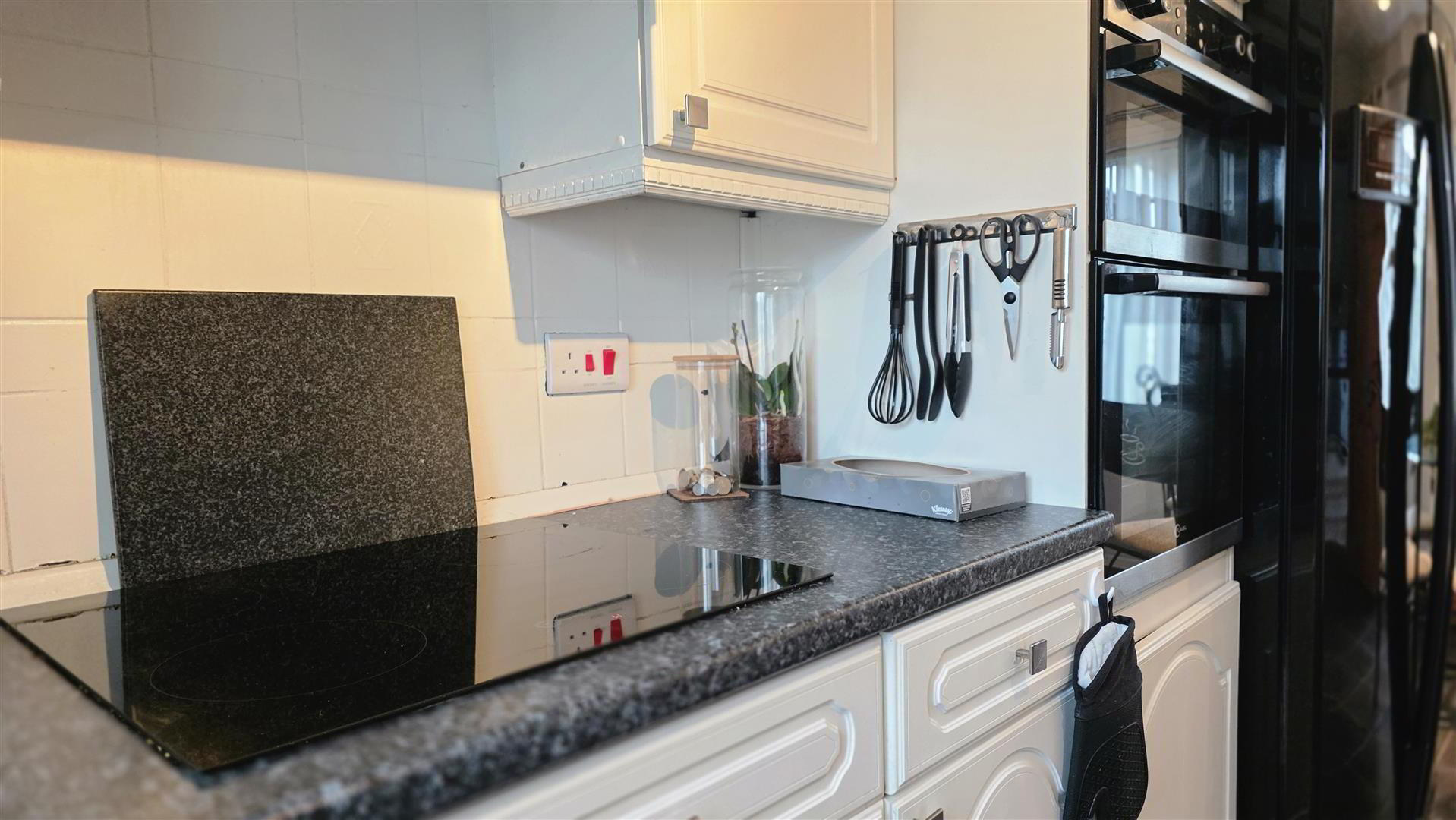 - White country style, high and low level kitchen units with contrasting work services and complimentary splashback tiling. One and one quarter bowl stainless steel sink unit with chrome mixer tap. Integrated four ring halogen hob with hooded overhead extractor fan. Integrated mid level double oven and grill. Space for washing machine and or dishwasher tumble dryer. Space for an 'American' style fridge freezer. Fully tiled flooring. Large understairs storage cupboard containing electric meter. Dual aspect windows. Double radiator.