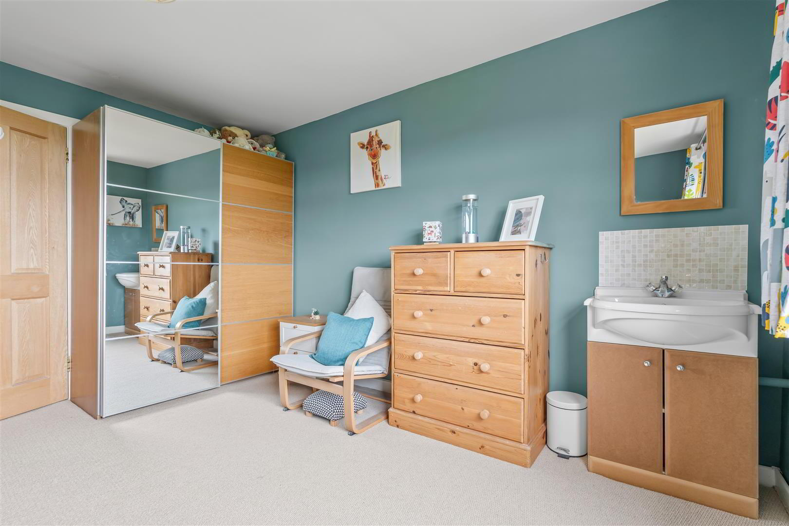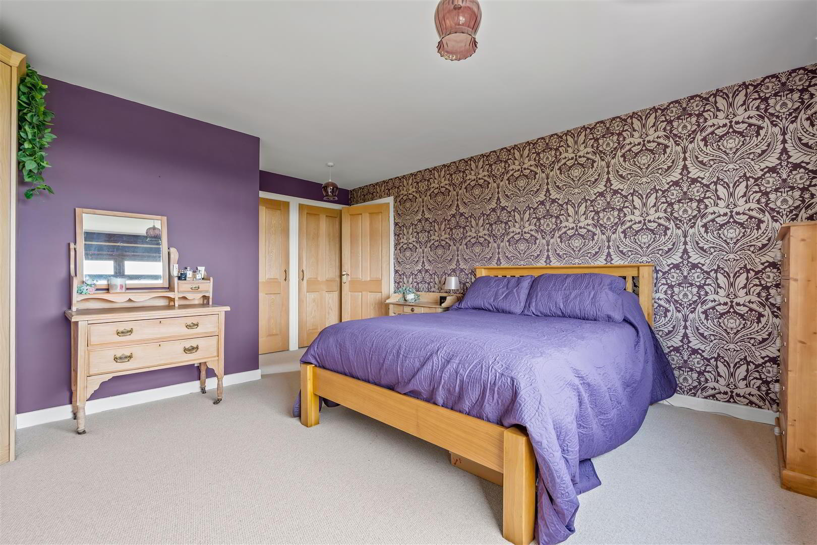 (to include both built-in wardrobes and ensuite) Full range of built-in light oak wardrobes and drawer set. Part glazed doors. Double radiator.
