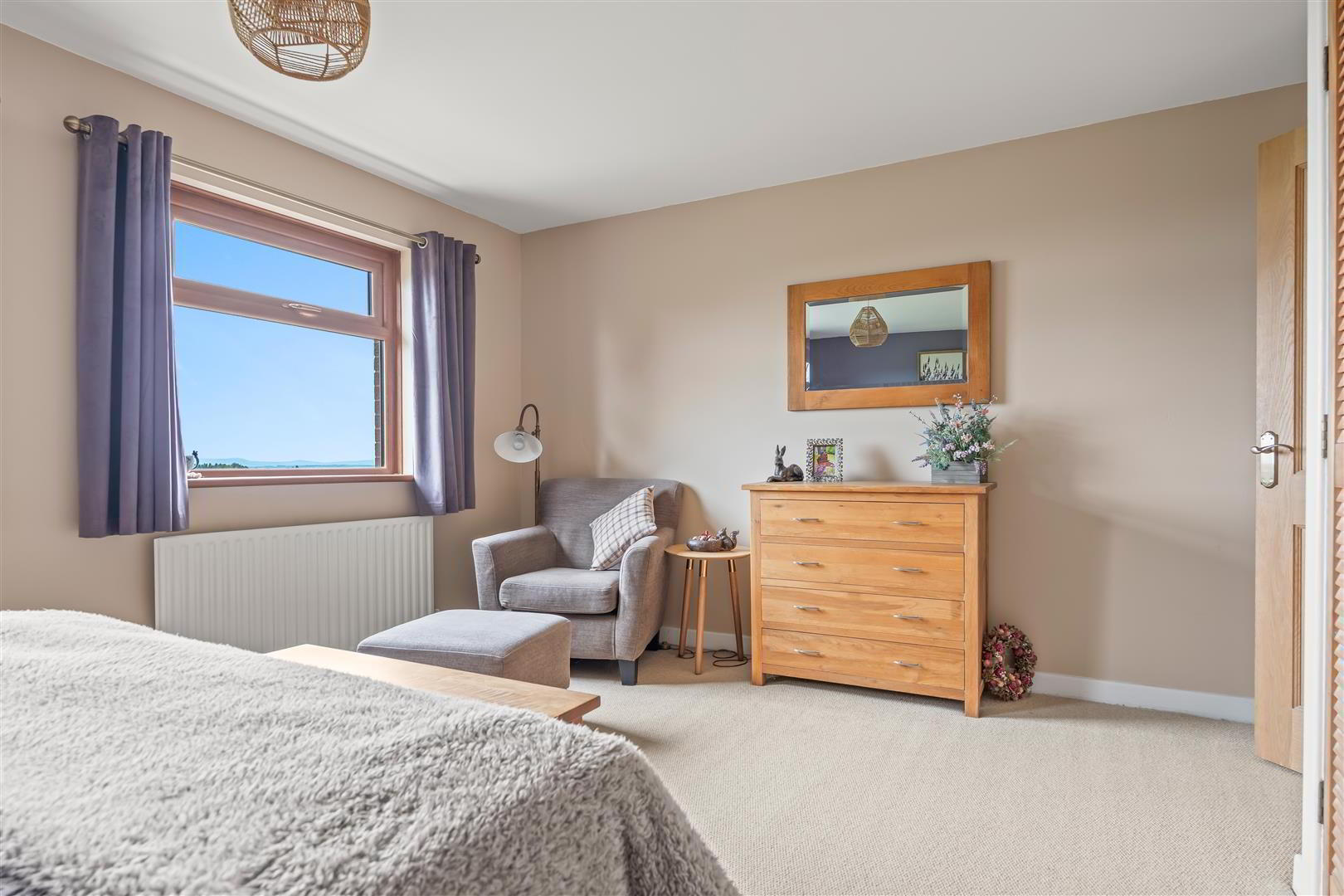 Sweeping tarmac driveway with kerbed edging and well stocked mature borders in low maintenance pebbles, conifers and shrubs. Generous parking for up to six cars with access to integral double garage. Extensive gardens to front, side and rear in neat lawn and mature trees. Low maintenance barked display. Timber enclosure for PVC oil tank and bins. Old style timber farm gate to spacious side garden with mature trees and shrubs. Timber shed 8'0 x 6'0 with low maintenance stone to the front and side. Raised timber planters. Stoned display area. Decorative stoned area to rear of house with inset paving slabs creating walkway to complimentary paved patio. Steps down to lower garden level. Open to timber decked patio with steps to lower garden level in neat lawn, mature conifer hedging and Summer House 9'0 x 9'0 with glazed windows and French doors providing superb views over the garden, surrounding fields and lough Neagh.