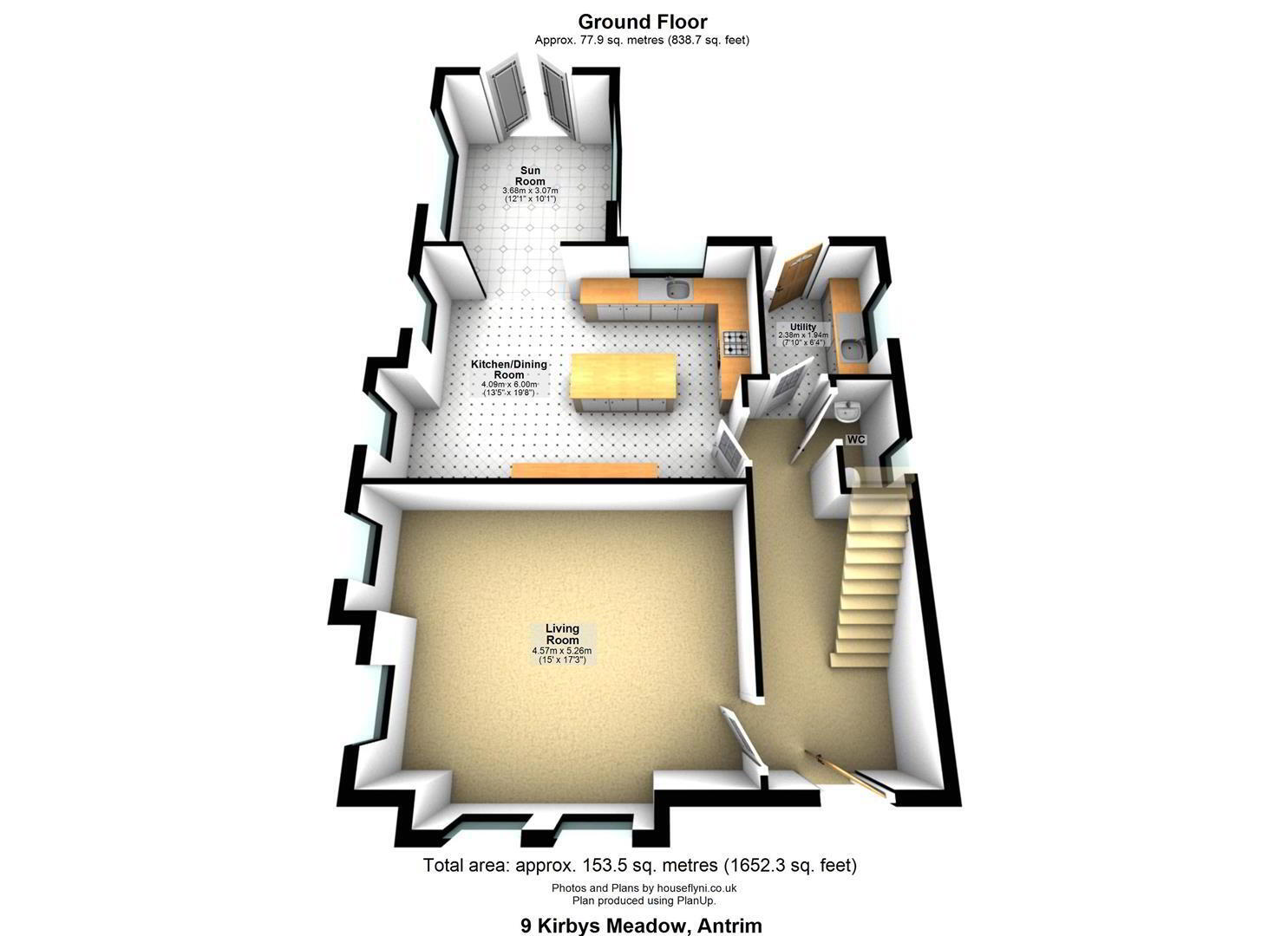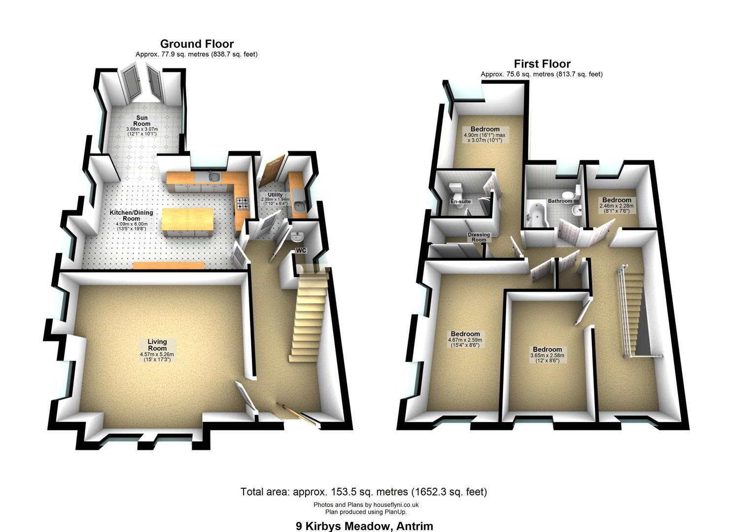 This unique home within the development offers beautifully proportioned and thoughtfully designed accommodation throughout with approx 1,660 Sq Ft of living space and the potential to convert the second floor with correct permissions offering a sizeable fifth bedroom and extending to Approx. 2,161 Sq Ft. The ground floor comprises a spacious living room and a stunning fully fitted kitchen complete with a host of integrated appliances, seamlessly flowing into a bright and generous sunroom—perfect for modern family living and entertaining. A separate utility room and ground floor WC complete the downstairs accommodation.