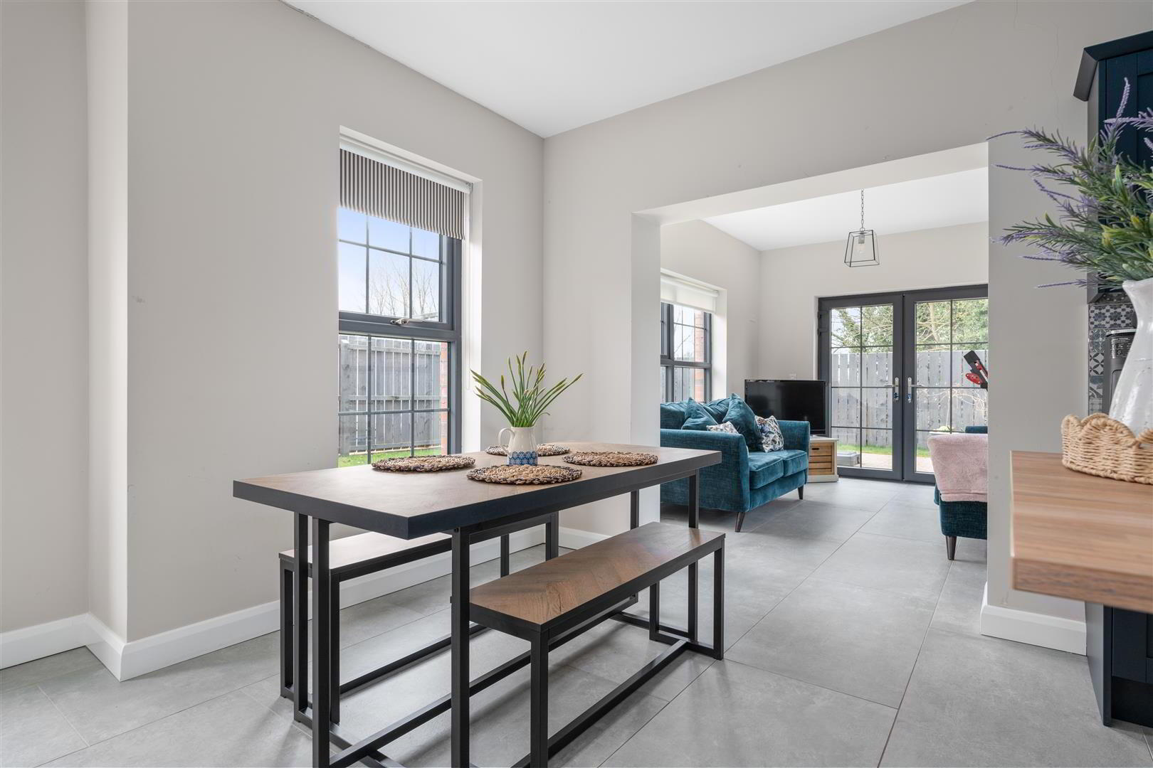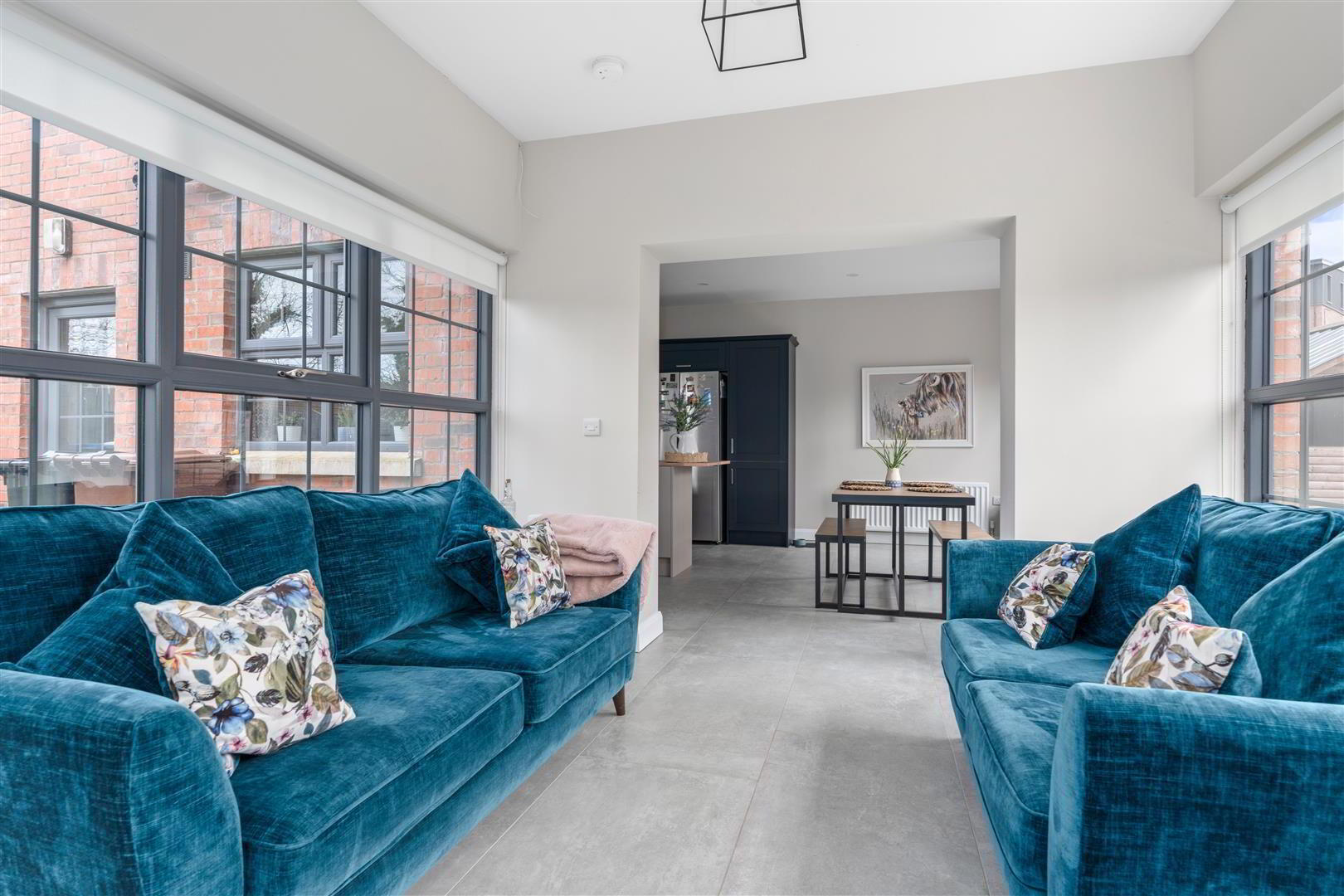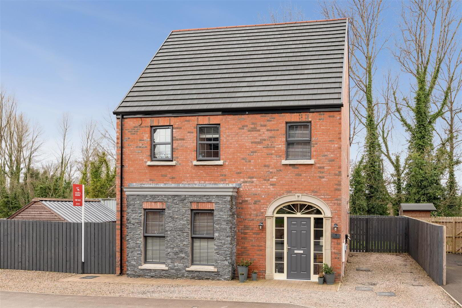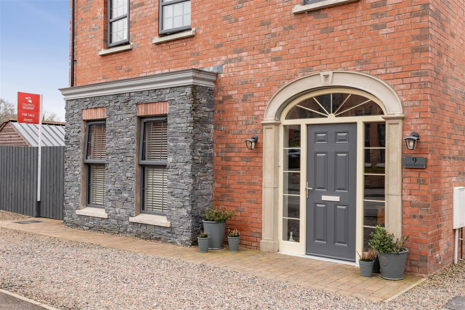 • Bevelled skirting and Architraves / Anthracite PVC windows / Seamless aluminium guttering / Gas fired central heating