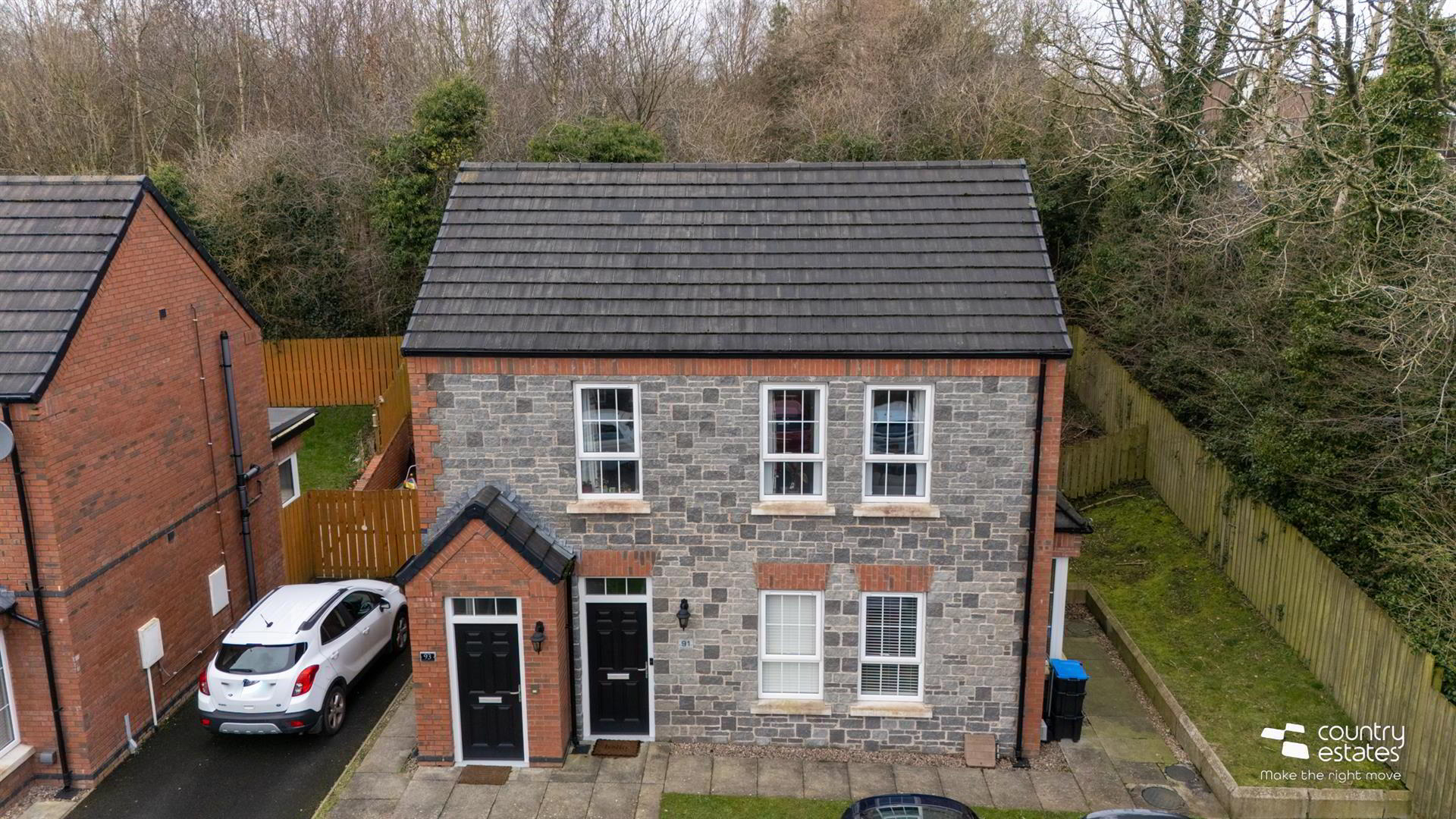 - Front door into entrance stairs to first floor.