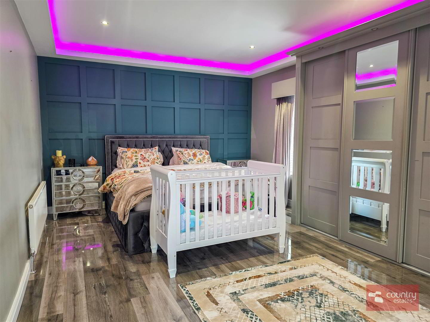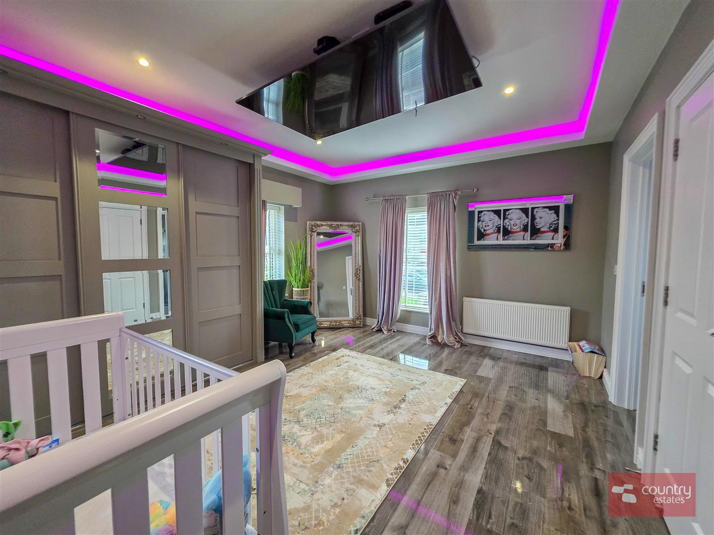 - Feature coffer style ceilings with RGB LED lighting. Built in ceiling fitted bluetooth speaker system. Quality high gloss laminate flooring. Built in three-bay wardrobes. Dual aspect windows. Quartz window sills.