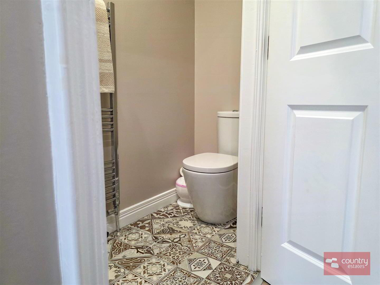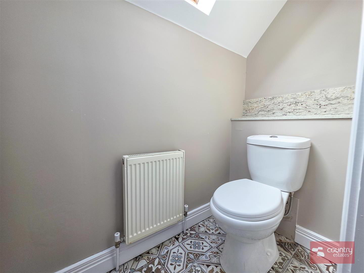 - Comprising semi pedestal wash hand basin with monobloc tap and tiled splash back and a button flush WC. Velux window. Tiled floor.