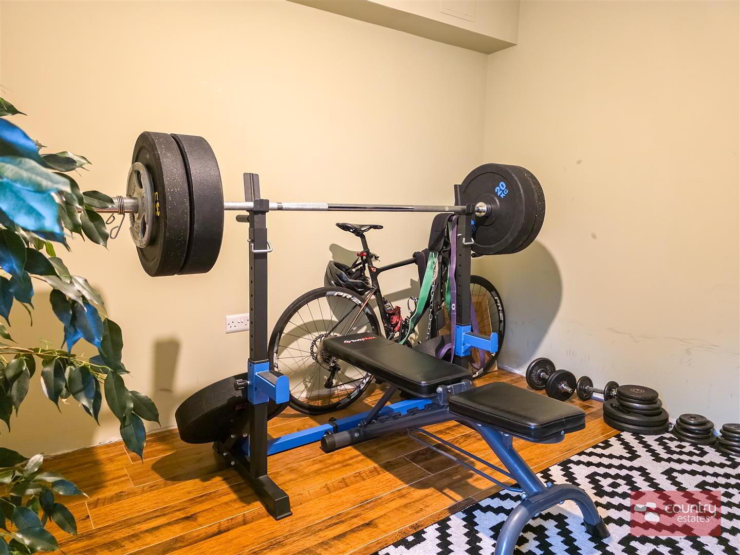 Presently used as home gym. Quality laminate flooring.