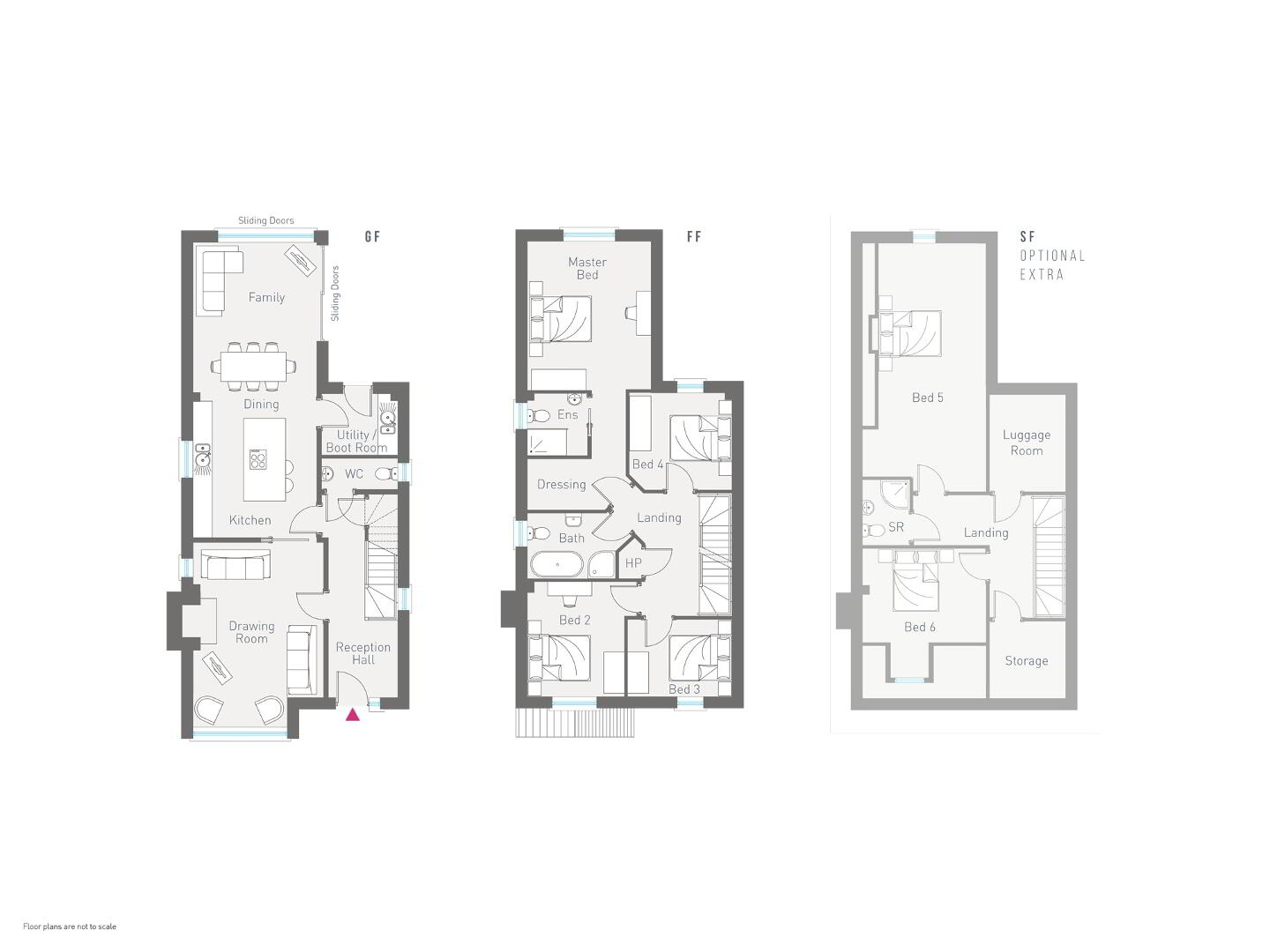 - Pendant lighting to feature in living room, landings and bedrooms