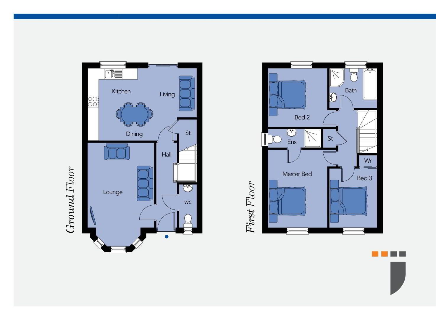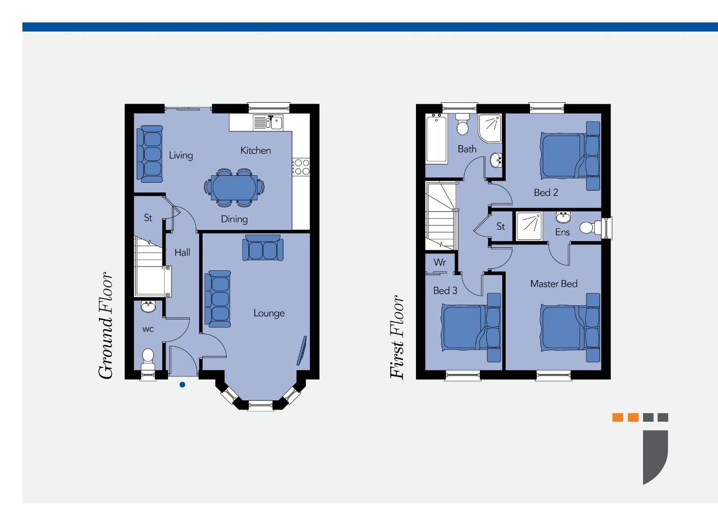 The Dockley at Springwater, Ballyclare, is a beautifully designed three-bedroom detached home, offering spacious and stylish living across two floors. With 1,111 sq ft of well-planned space, the home features an elegant bay-windowed reception room and an open-plan kitchen and dining area. Upstairs, the master bedroom benefits from an ensuite, while three additional bedrooms and a family bathroom provide ample space for modern family life. With its timeless exterior and high-quality interior layout, the Dockley is a perfect blend of classic charm and contemporary comfort.